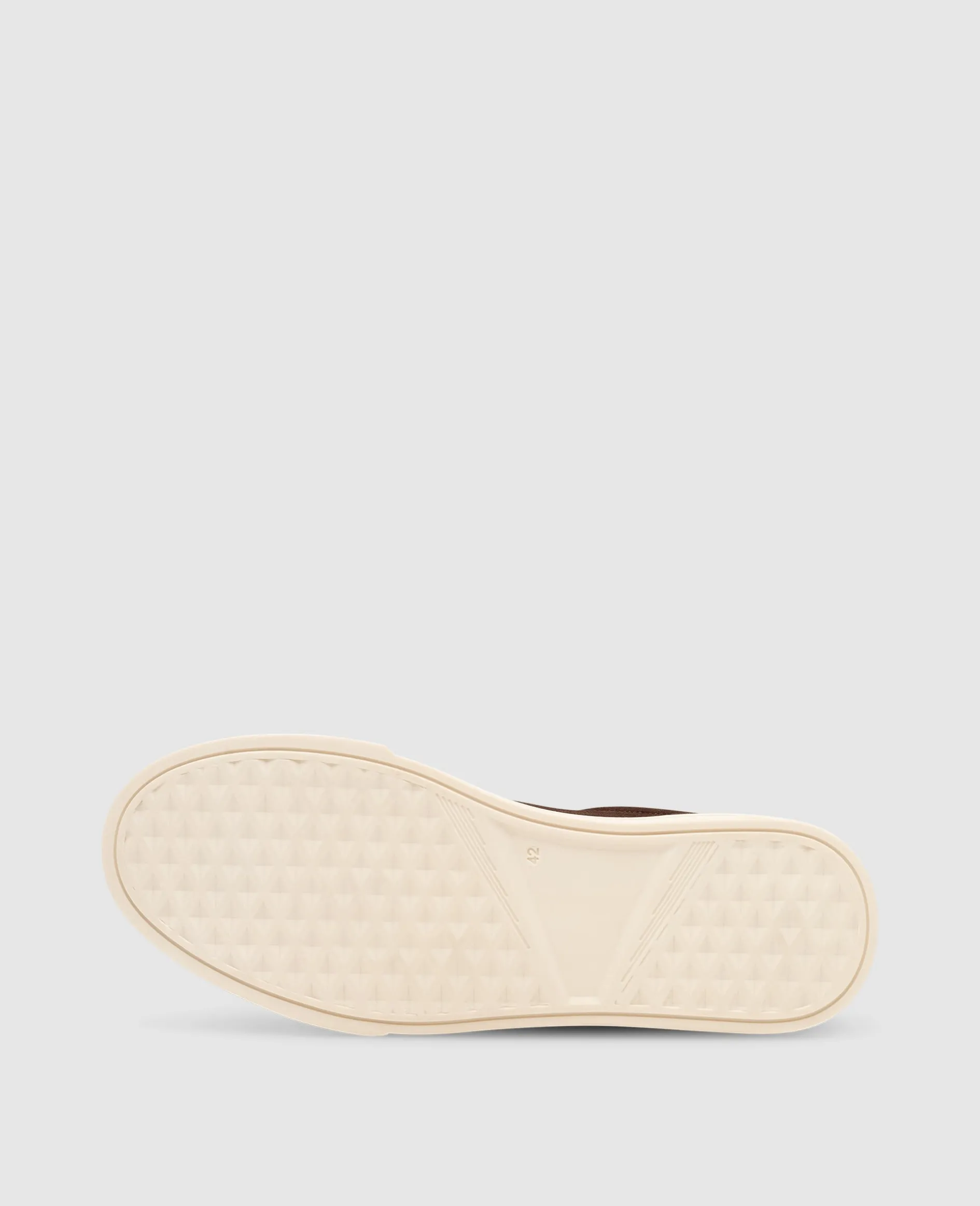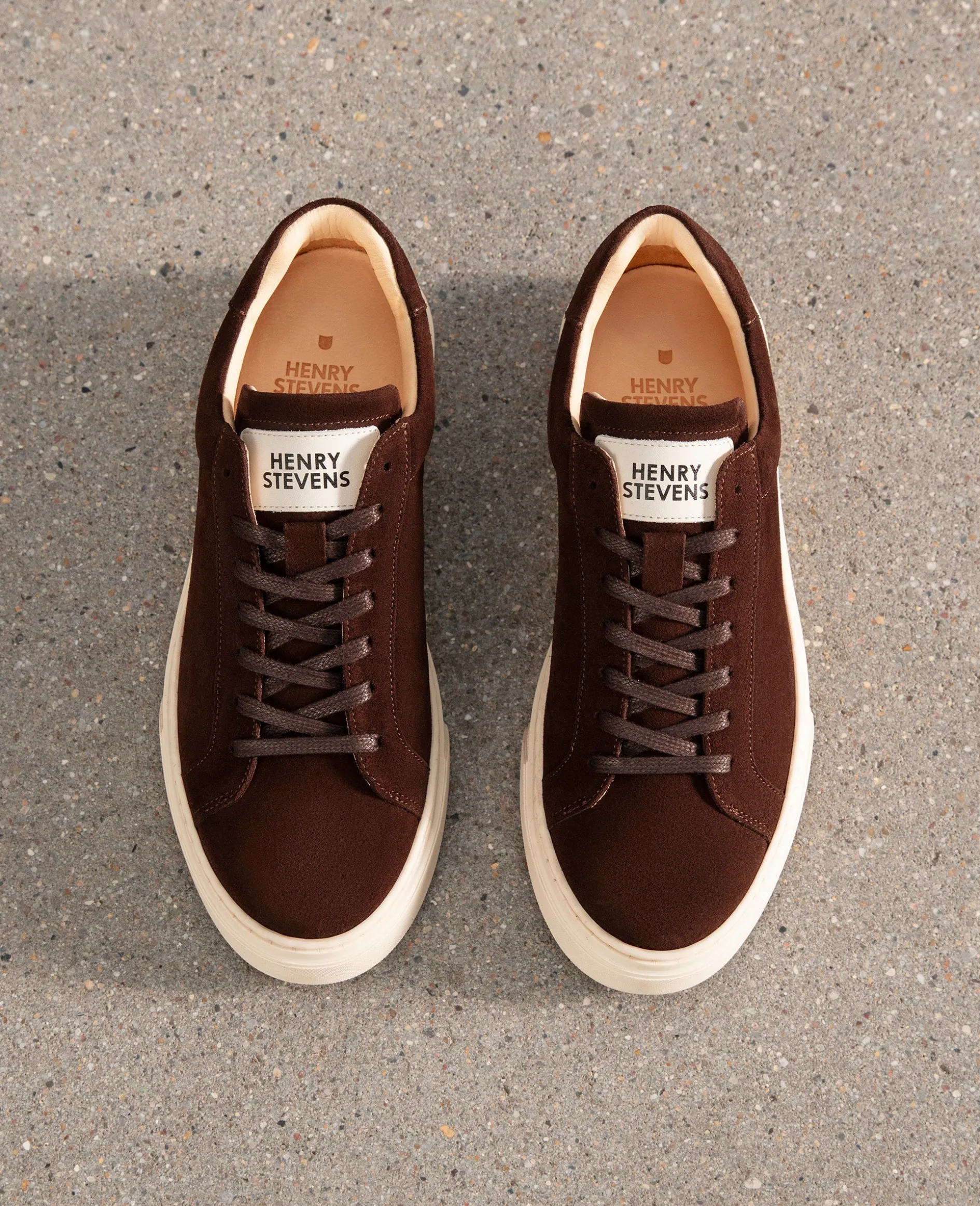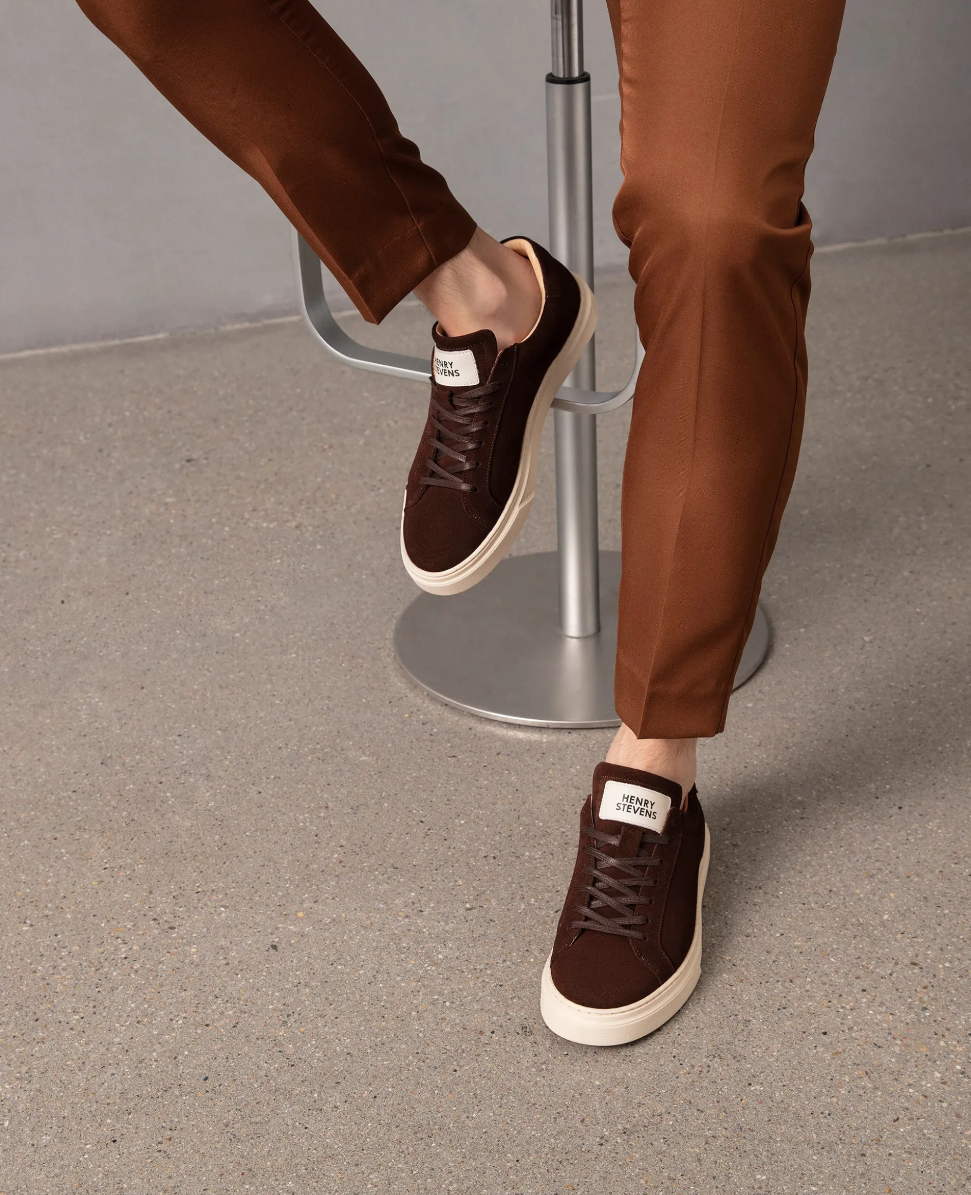Der Travis Sneaker in Braun aus Kalbsvelours überzeugt mit einem Innenfutter aus hochwertigem Bio Leder und einer bequemen Sneakersohle. Dank seines zeitlosen Designs ist er das ganze Jahr über ein stilvoller Begleiter.