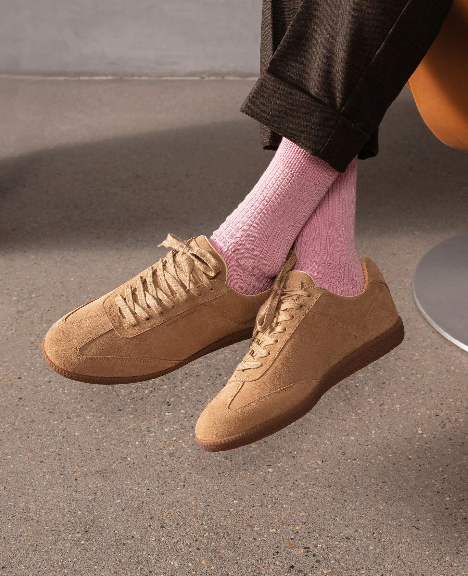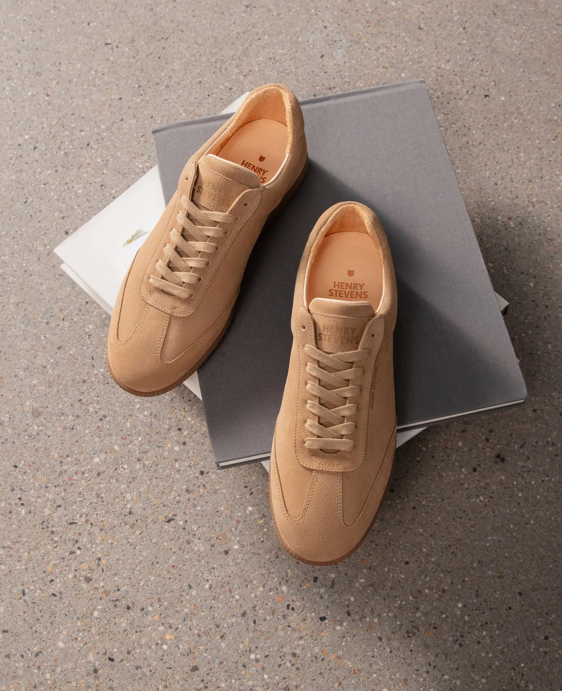 Der Travis Indoor-Sneaker ist ein eleganter Schuh in Beige aus Kalbsvelours mit einem Innenfutter aus Bio-Leder. Die Retro-Sohle sorgt für hohen Tragekomfort, während das zeitlose Design ihn ganzjährig tragbar macht.