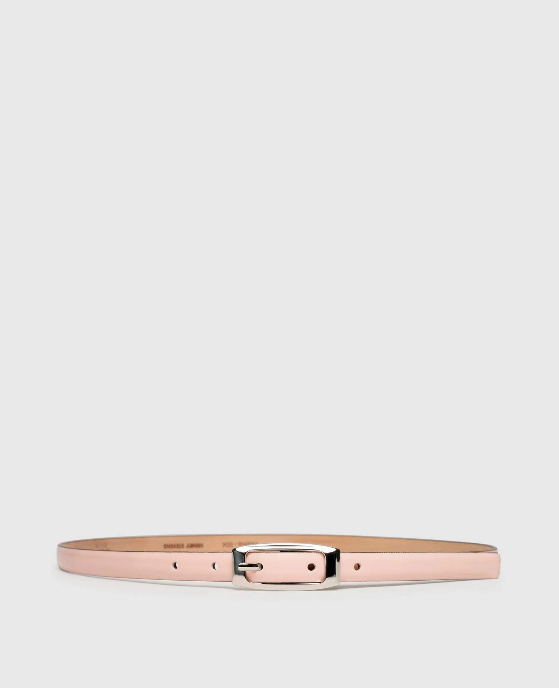 Ein sagenhafter Spiegelglanz präsentiert sich auf dem Außenleder dieses Damengürtels von Henry Stevens. Der filigrane Gürtel mit einer Breite von 1,5 Zentimetern ist die perfekte Wahl zu einem Paar unserer Lackschuhe. Innen sowie außen ziert den Gürtel hochwertiges Kalbsleder, während die Außenseite mit einer speziellen Lackschicht versehen wird und so den schillernden Effekt kreiert. Komplettiert wird das Ensemble durch eine Dornschließe in Silber.
