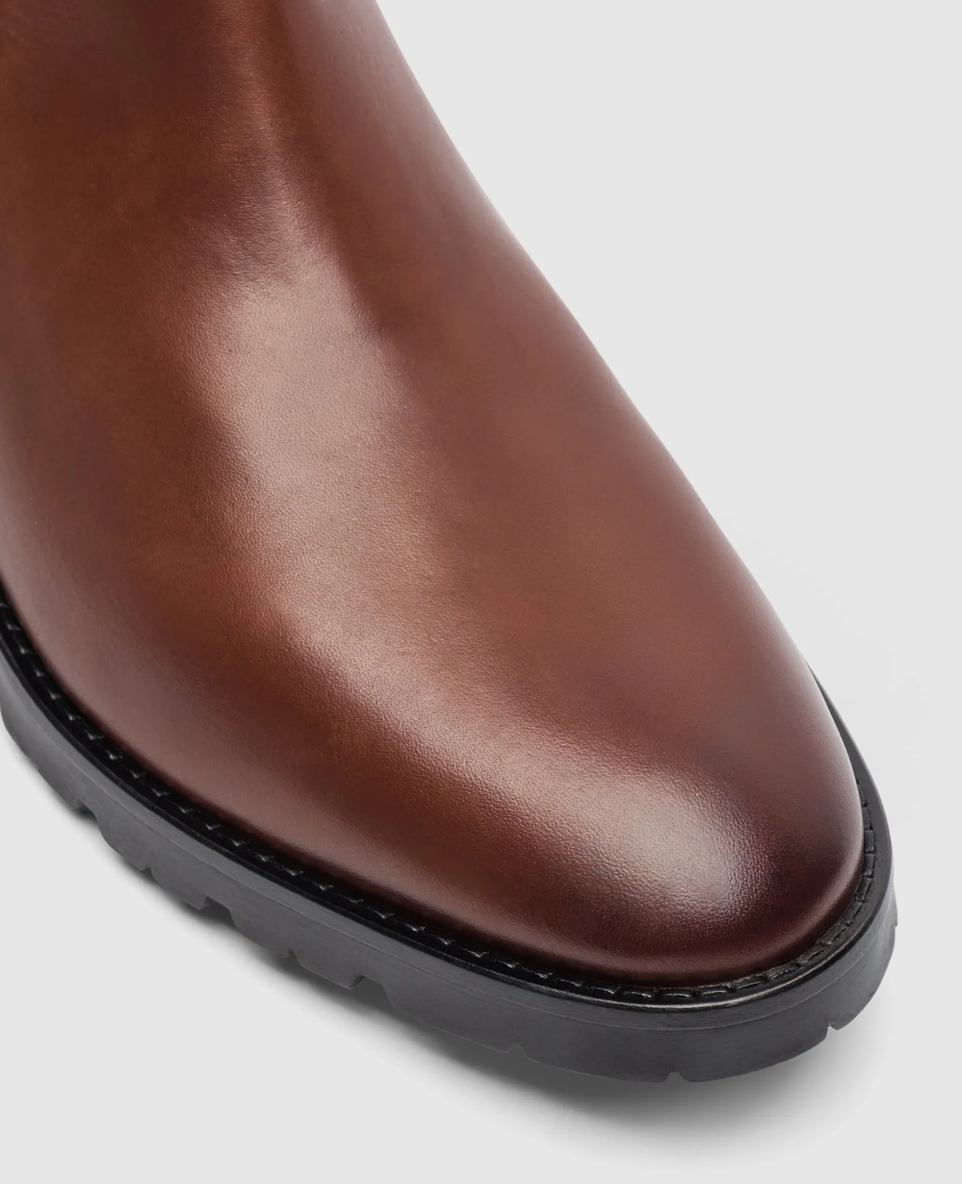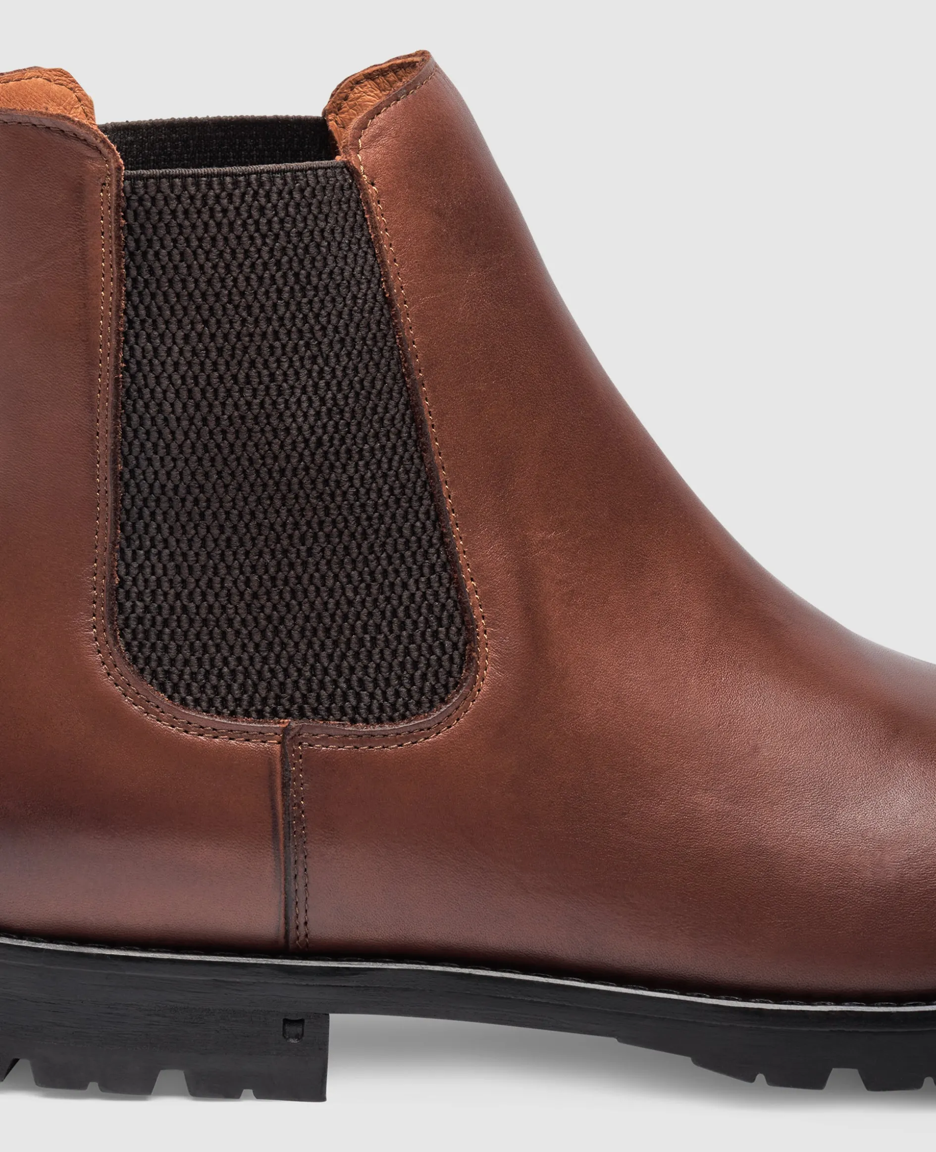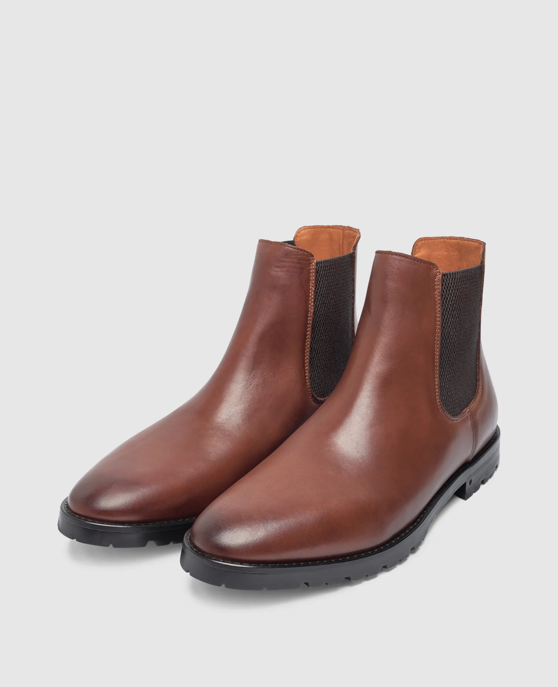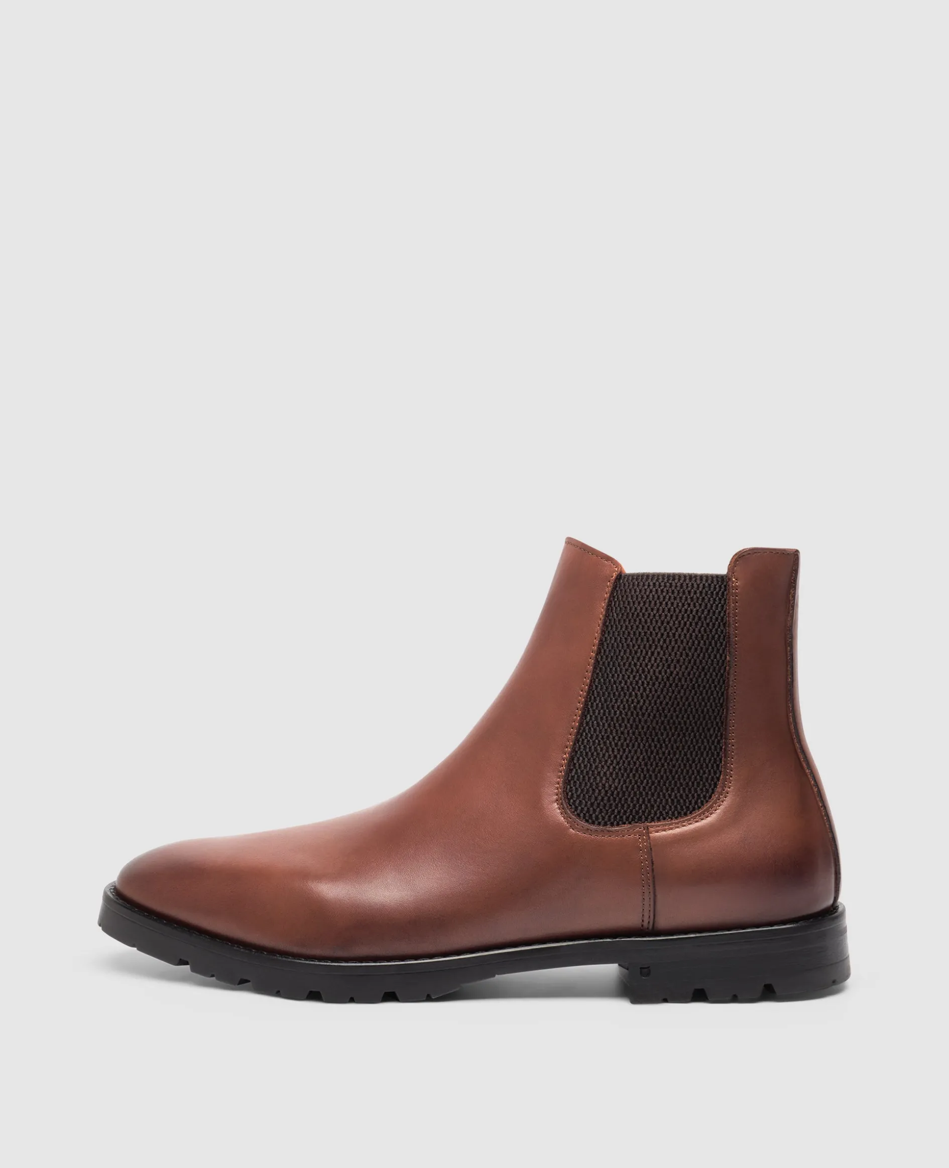 Ein Klassiker unter den Herrenstiefeln präsentiert Henry Stevens mit diesem Chelsea Boot in Dunkelbraun als echtes Leichtgewicht mit besten Komforteigenschaften. Der Schaft aus glattem Kalbsleder wird um die definierenden Elastikeinsätze ergänzt, welche dem Träger einen besonders leichten Einstieg garantieren. Für maximalen Komfort sorgt das Lederfußbett mit integriertem Memoryfoam, das jeden Schritt zum Vergnügen macht.