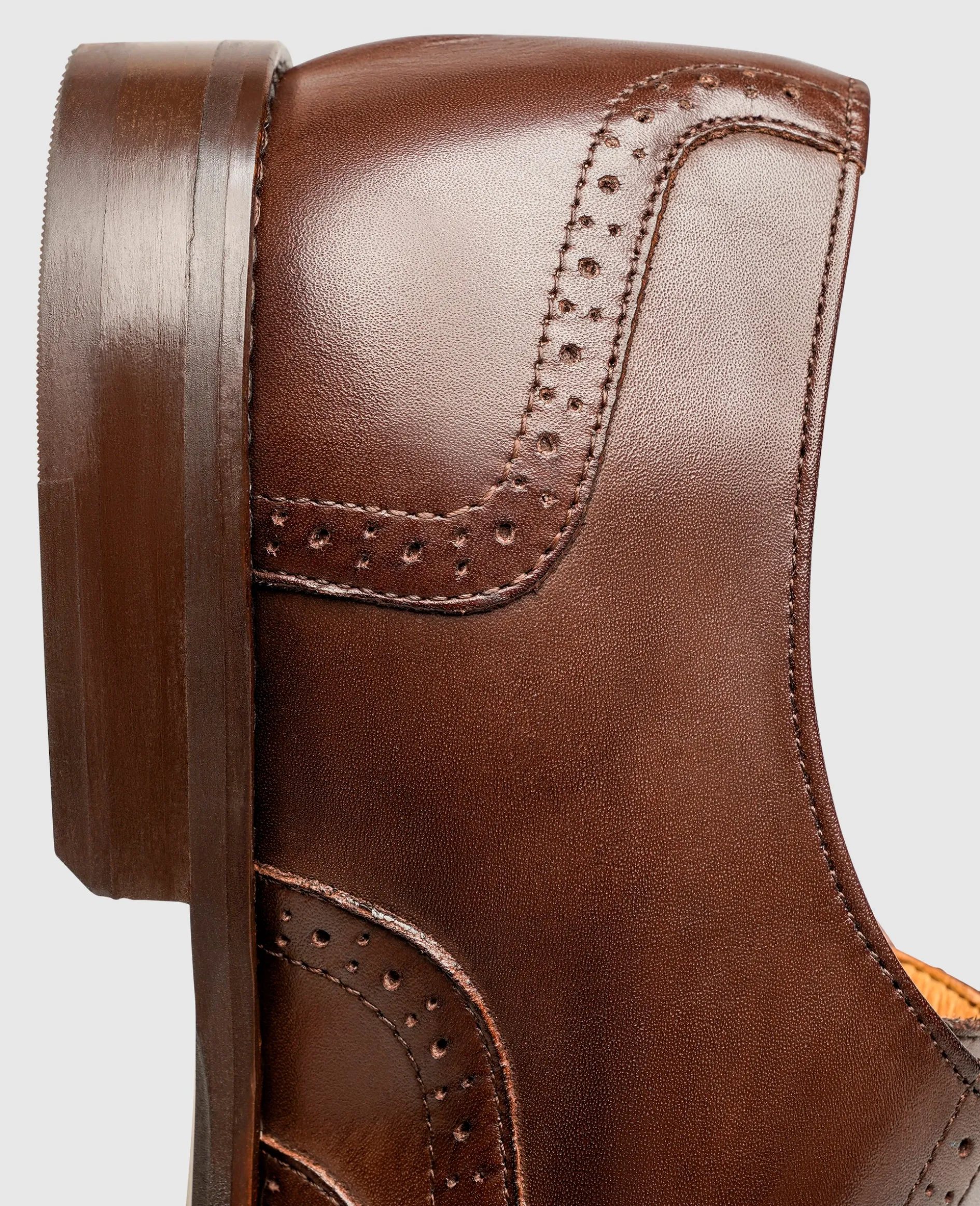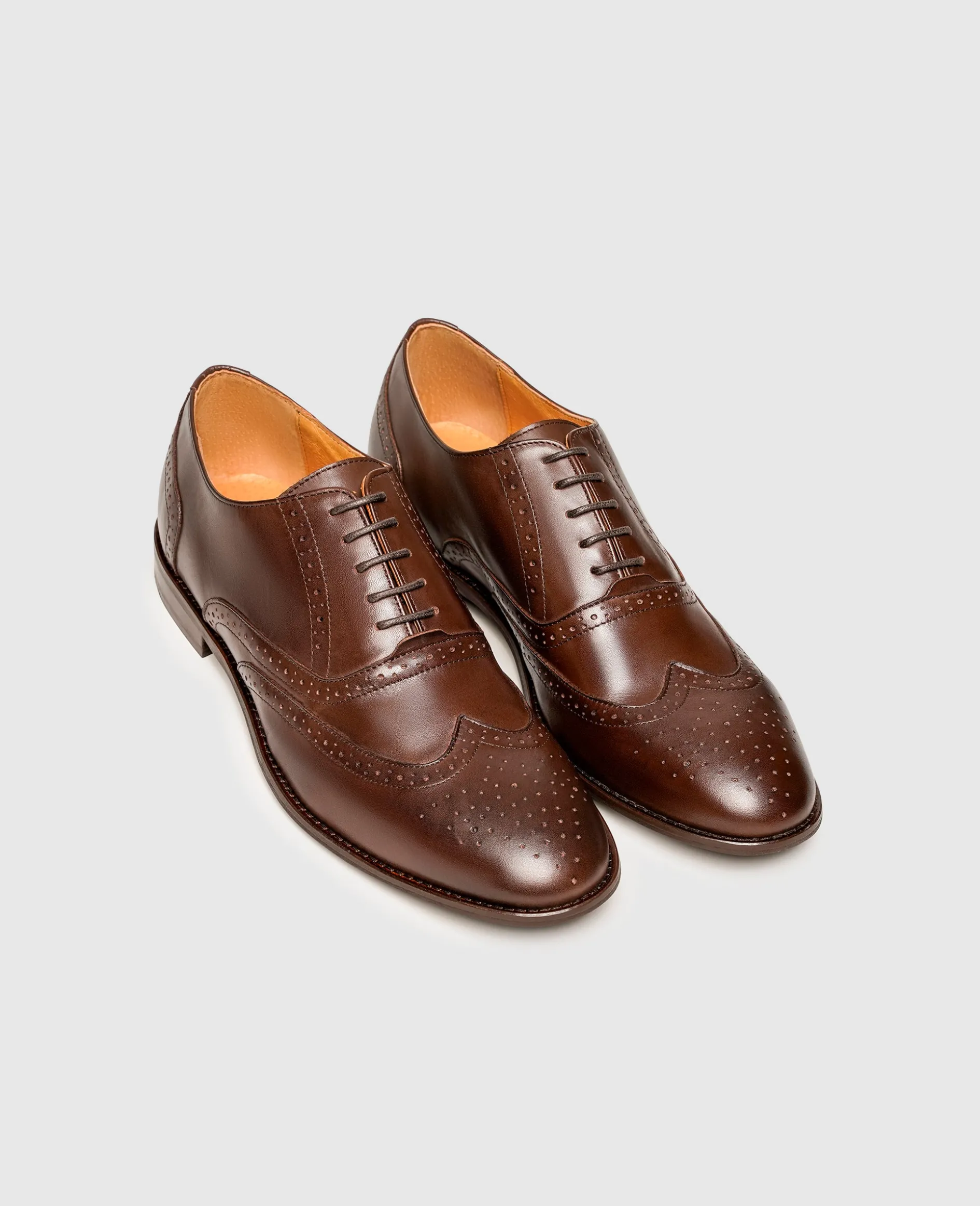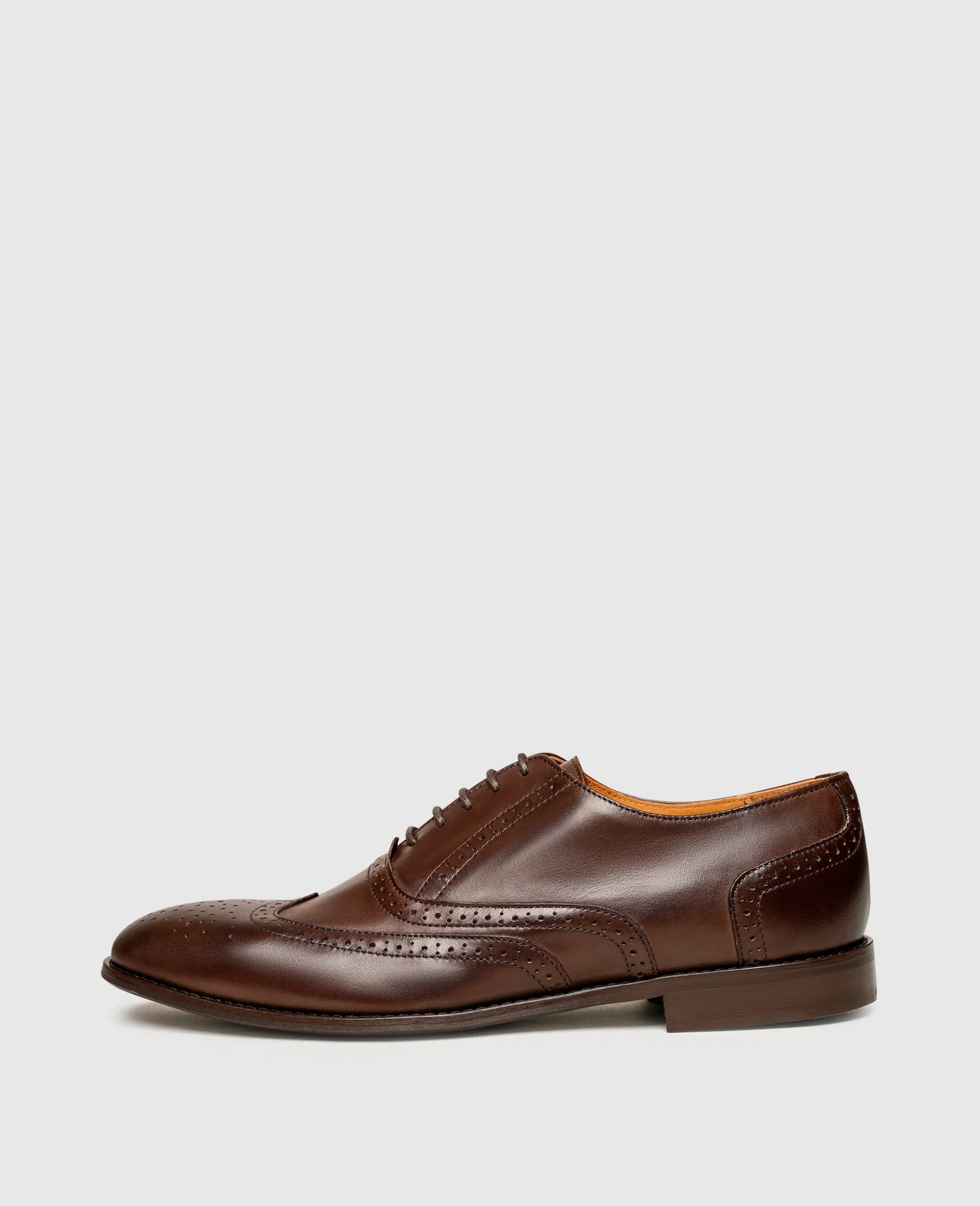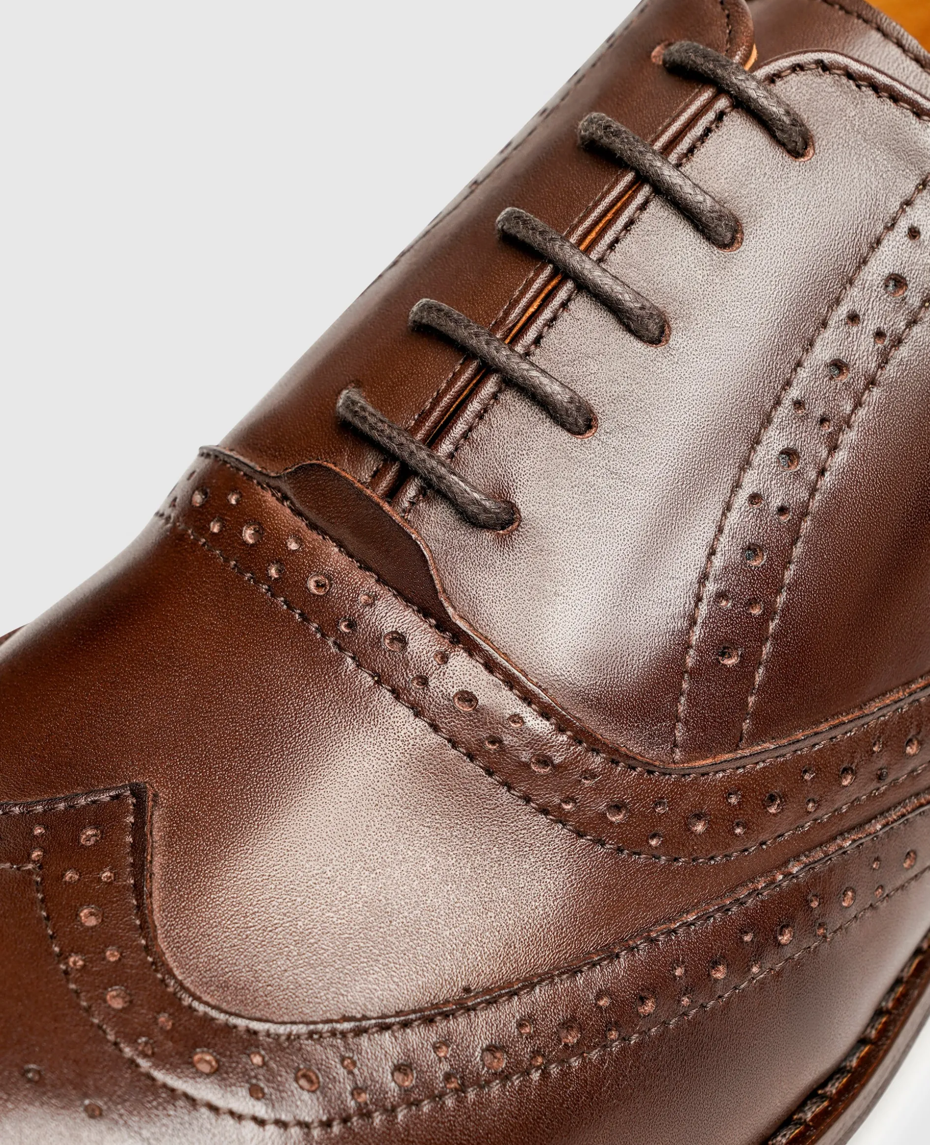 Das geschmeidig glänzende Glattleder-Gewand des Wallace Full-Brogue Oxford von Henry Stevens findet seine optische Vollendung durch eine opulente Lochmusterung und setzt so stets ein Statement. Doch auch in Sachen Komfort kann das anmutige Modell höchste Ansprüche erfüllen. Die Laufsohle aus Gummi sowie das Fußbett aus Leder und Memoryfoam verleihen dem klassisch-modernen Begleiter viel Flexibilität und ein geringes Eigengewicht.