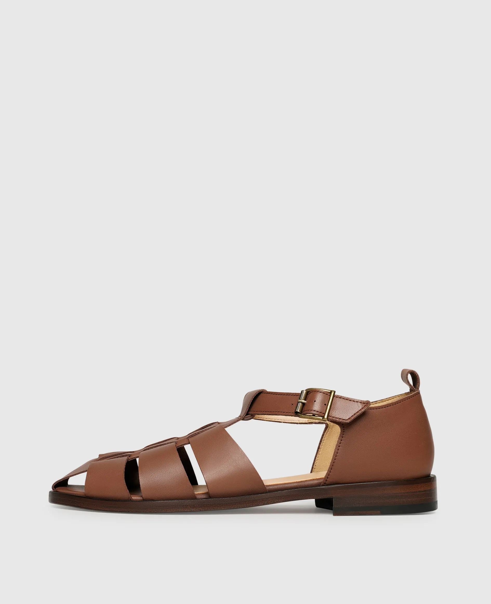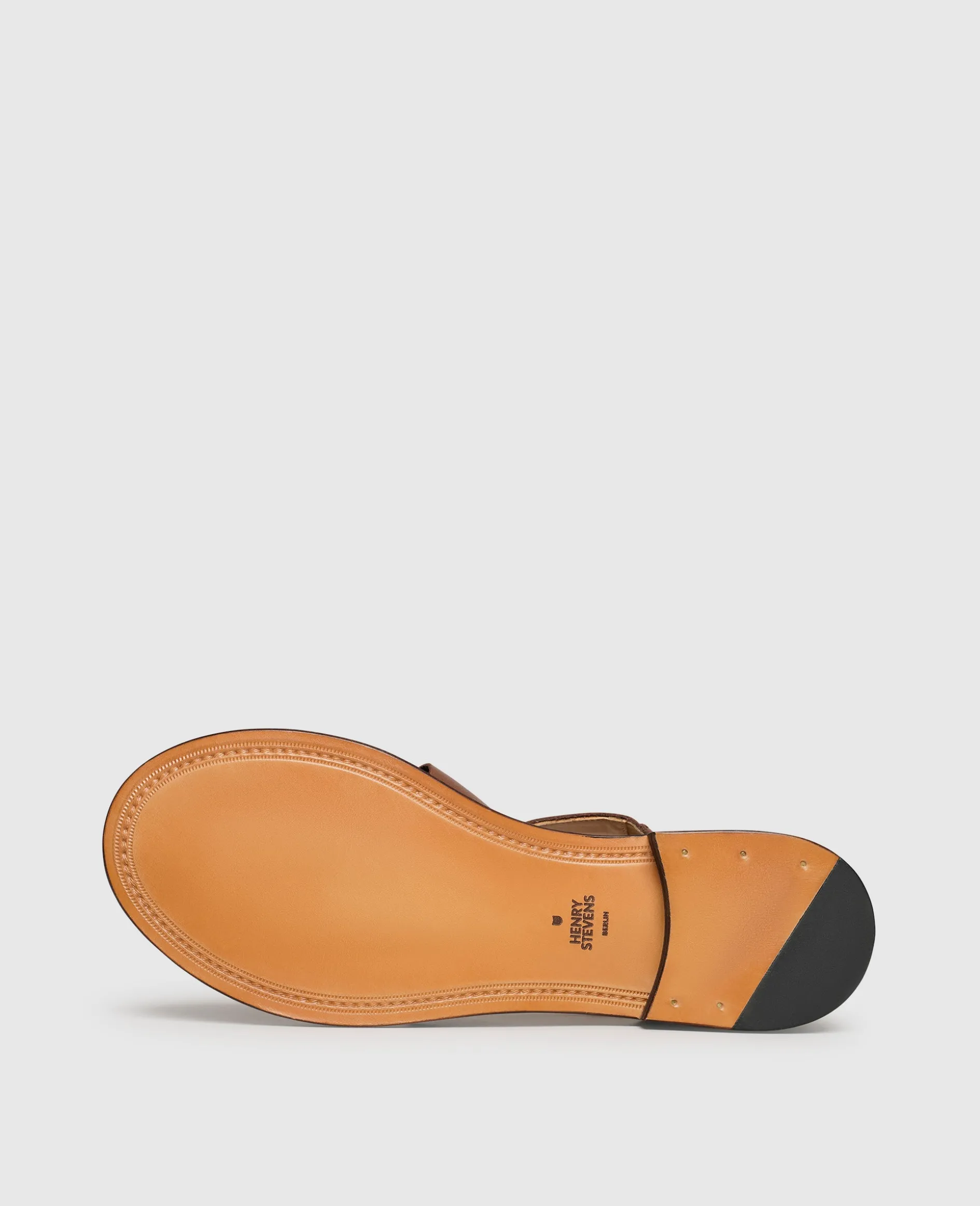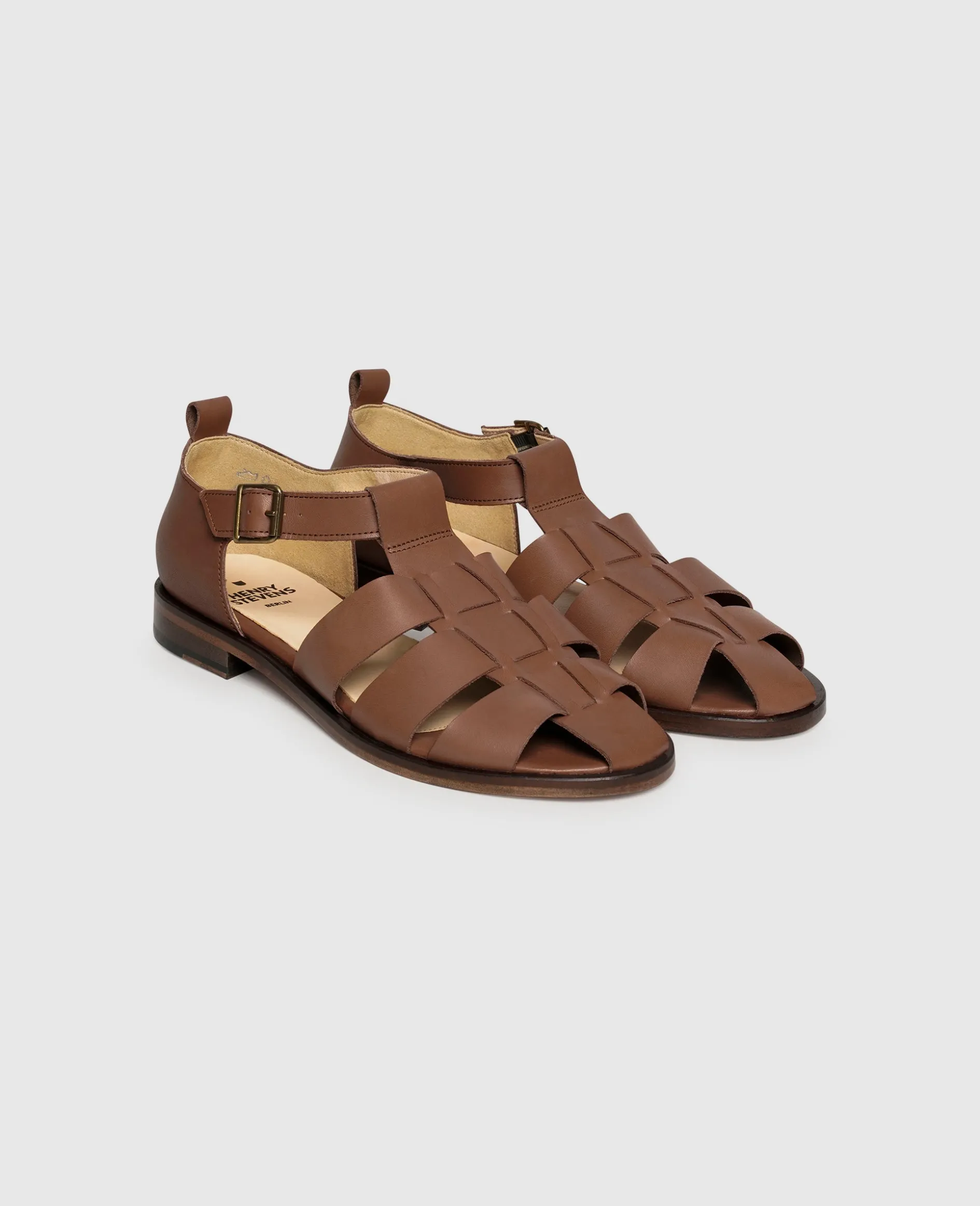 Diese Sandalen von Henry Stevens sind genau das Richtige für eine entspannte Zeit an heißen Sommertagen. Den braunen Schuh zieren Riemen aus glattem und feinem Kalbsleder, dessen Weite durch eine Schnalle reguliert werden kann. Im Schuhinneren befindet sich pflanzlich gegerbtes und vollständig kompostierbares Bio-Leder. Durch das weiche Lederfußbett mit Memoryfoam-Effekt und die Laufsohle aus Leder wird Ihr Komfort auf ein unglaublich hohes Niveau gehoben. Mit dieser Fischersandale, die in Portugal gefertigt wurden, vollenden Sie Ihre legeren Sommer- und Freizeitlooks.