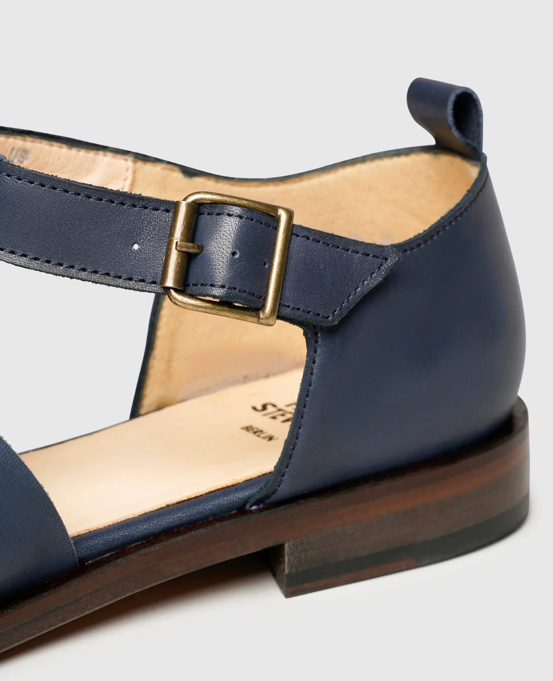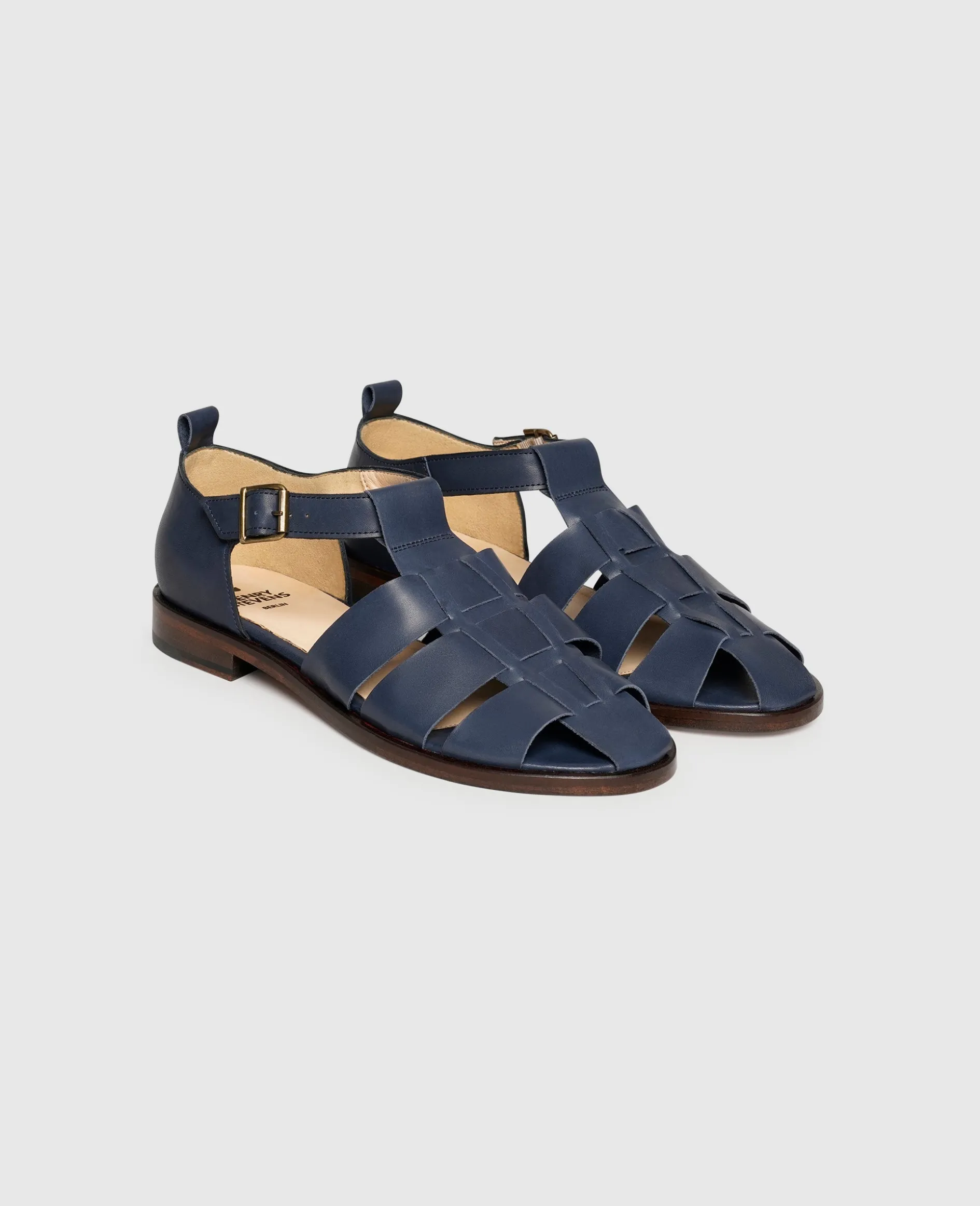 Diese Sandalen von Henry Stevens sind genau das Richtige für eine entspannte Zeit an heißen Sommertagen. Den blauen Schuh zieren Riemen aus glattem und feinem Kalbsleder, dessen Weite durch eine Schnalle reguliert werden kann. Im Schuhinneren befindet sich pflanzlich gegerbtes und vollständig kompostierbares Bio-Leder. Durch das weiche Lederfußbett mit Memoryfoam-Effekt und die Laufsohle aus Leder wird Ihr Komfort auf ein unglaublich hohes Niveau gehoben. Mit dieser Fischersandale, die in Portugal gefertigt wurden, vollenden Sie Ihre legeren Sommer- und Freizeitlooks.