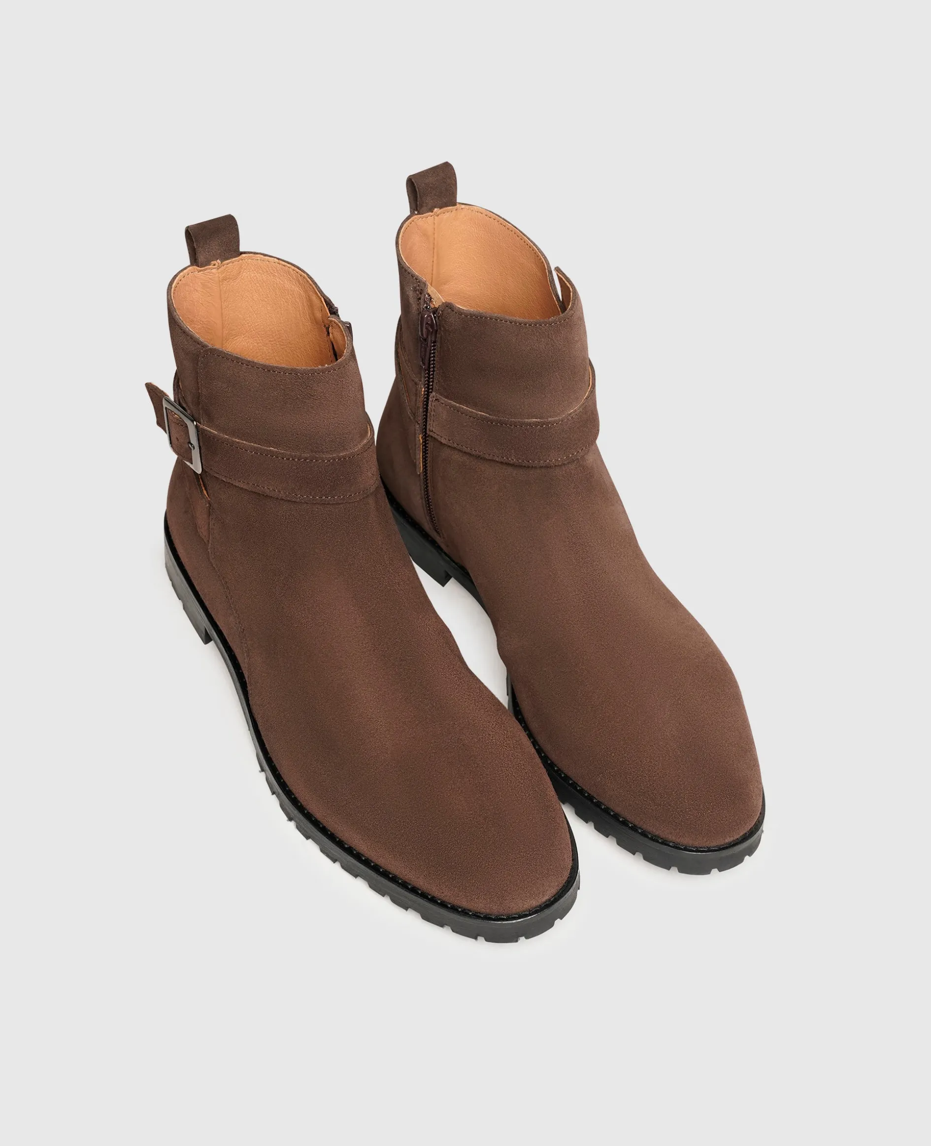 Der traditionsreiche Jodhpur Boot erlebt während der letzten Jahre einen modischen Aufschwung und erfreut sich größter Beliebtheit während der Herbst- und Wintersaison bei vielen Herren. Das Wallace Modell aus feinem Velours überzeugt dank der Fertigung in der konventionellen Machart durch ein geringes Gewicht, während das Fußbett aus Leder mit Memoryfoam-Effekt jeden Gang zum Komforterlebnis erhebt. Auf glattem oder nassem Untergrund schützt der Jodhpur Boot seinen Träger dank einer robusten Gummisohle mit Profil.