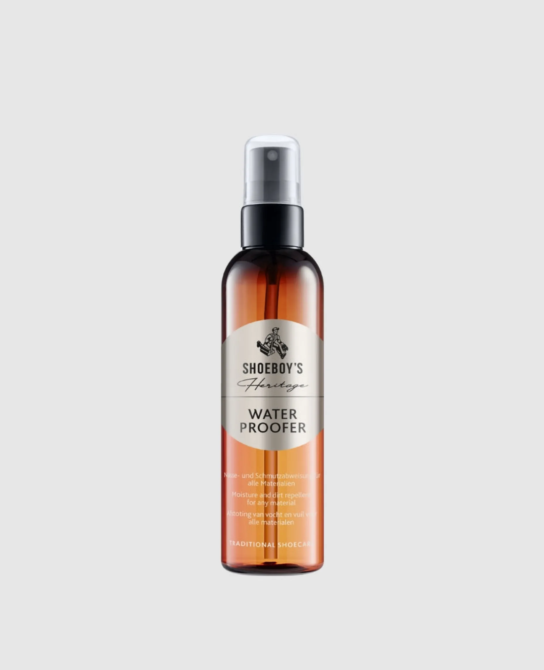 Einen effektiven Schutz vor Schmutz und Nässe für Glatt- und Rauleder sowie Textilien erzielt der Water Proofer von Shoeboy’s Heritage. Das wasserbasierte Imprägniermittel verzichtet auf Treibgas und ist frei von PFC. Für eine gleichmäßige Imprägnierung sollte das Pumpspray aus einer Entfernung von etwa 30 cm verwendet werden. Nach einer gewissen Einwirkzeit lassen sich mögliche Rückstände mit einem weichen Tuch entfernen. – Inhalt: 200 ml.