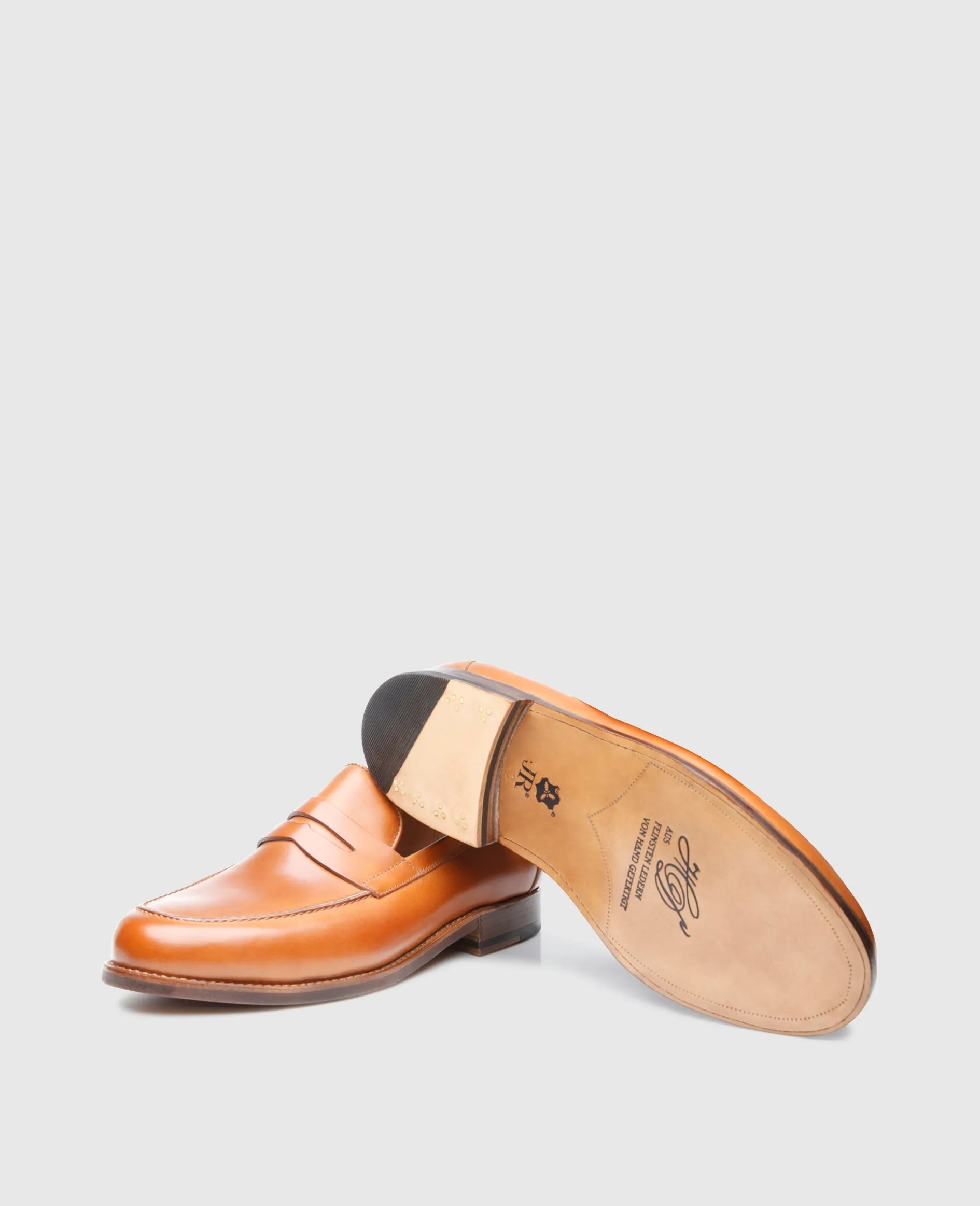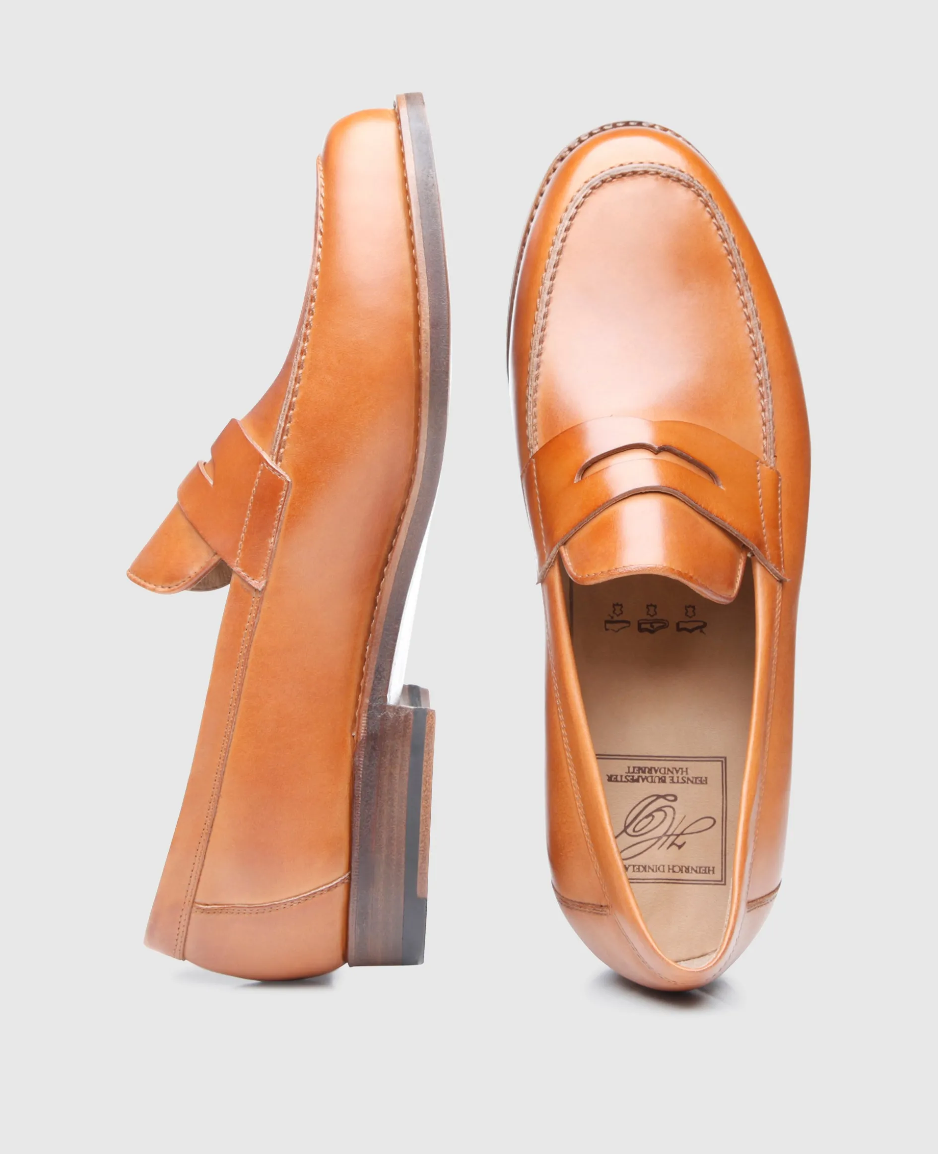 Ein unverzichtbarer Teil der klassischen Herrengarderobe ist der Penny Loafer: Der leichte Schlüpfschuh lässt sich mit oder ohne Socken tragen und wird in der Manufaktur von Heinrich Dinkelacker handgefertigt. Das weiche Kalbsleder überzeugt durch seine angenehme Patina und verleiht dem Herrenschuh ein gewisses Extra.