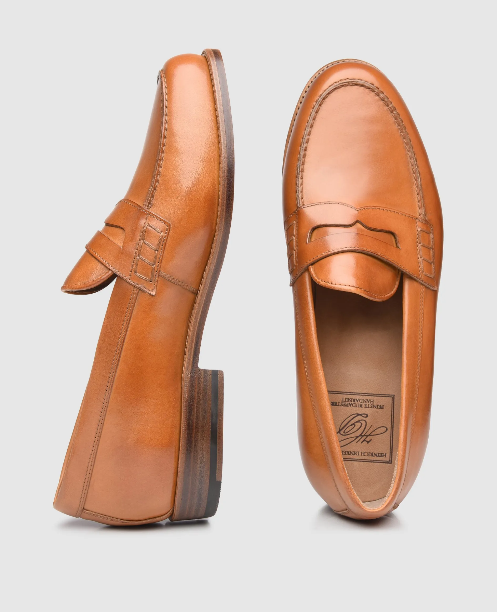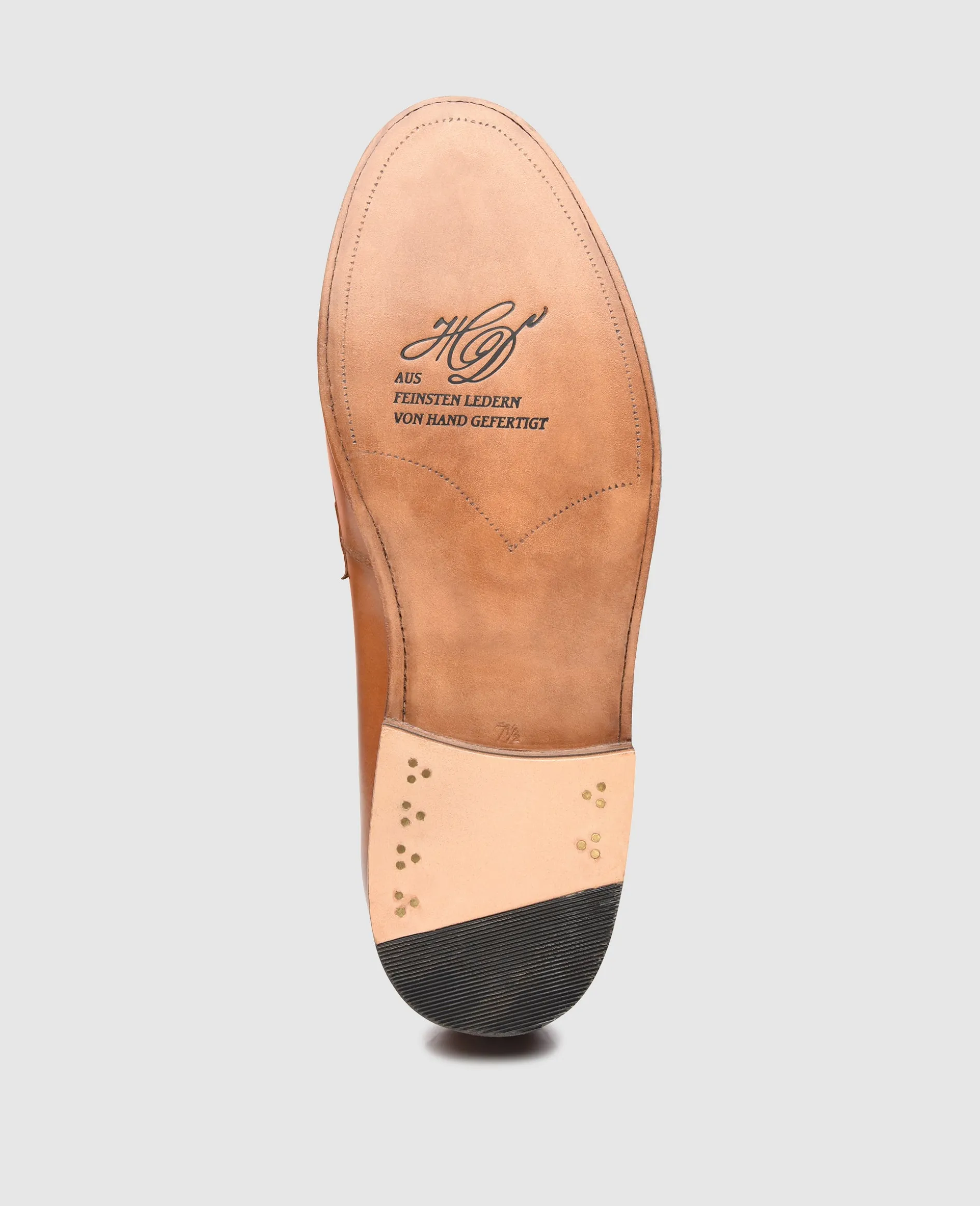 Der Penny Loafer gilt als der bekannteste Schlupfschuh schlechthin. Sein offener Schaftgrundschnitt wird von einem U-förmigen Blatteinsatz und einem traditionell quer über den Rist verlaufenden Lederriemen akzentuiert, unter welchem College-Studenten einst an Prüfungstagen den berühmten Glückspfennig versteckten.