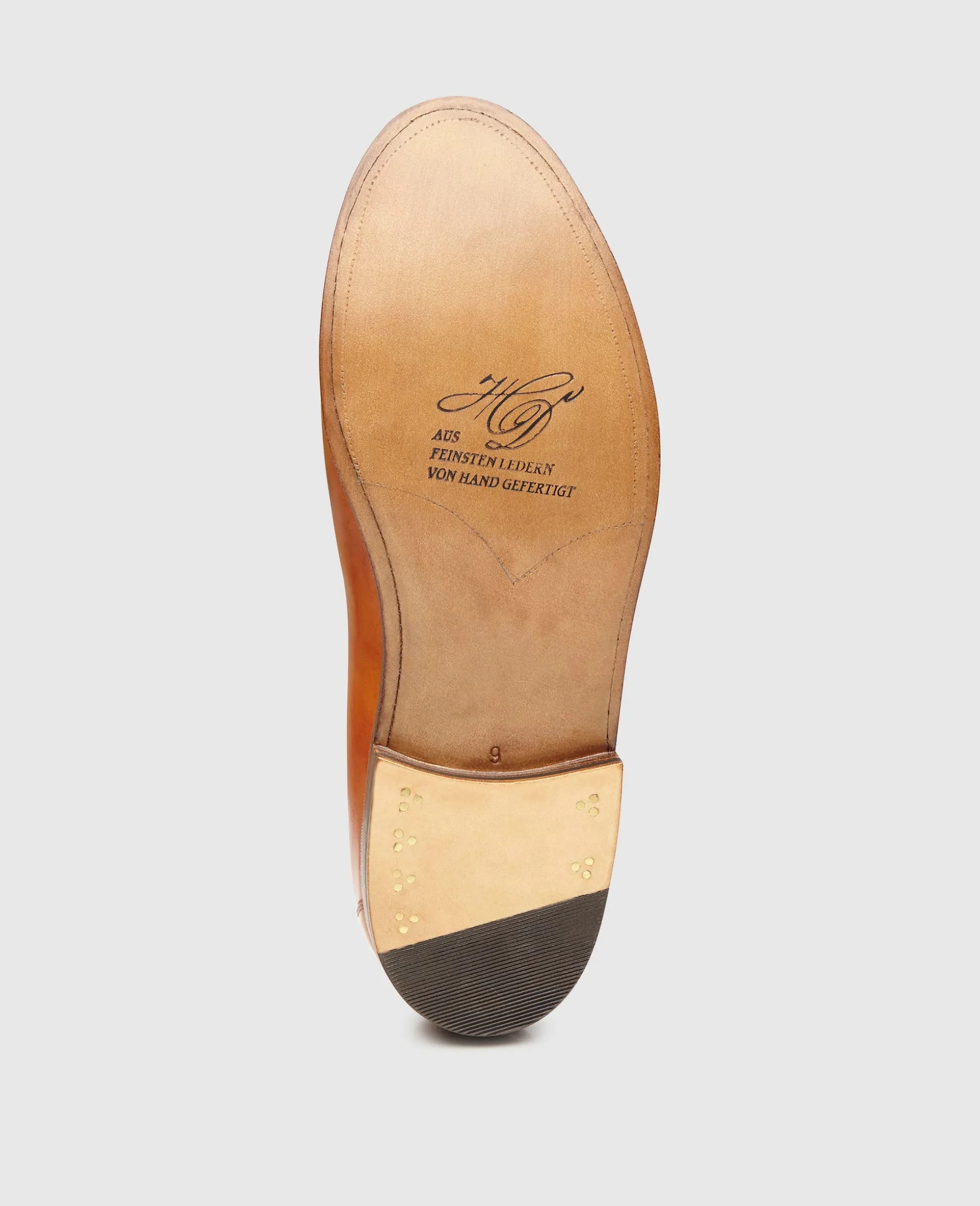 Bei diesem rahmengenähten und handgefertigten Penny Loafer von Heinrich Dinkelacker handelt es sich um einen klassischen Sommer- und Freizeitschuh für Herren. Der elegante Schlupfschuh begeistert im zeitlosen Design, mit erlesenen Materialien sowie einer detailverliebten Fertigung nach Budapester Vorbild. Der Schaft besteht aus feinstem Toscana Calf. Charakteristisch für das edle Glattleder sind sanfte Farbnuancen. Die renommierte Rendenbach Laufledersohle unterstützt ein leichtes Tragegefühl und verspricht gleichwohl höchste Qualität.