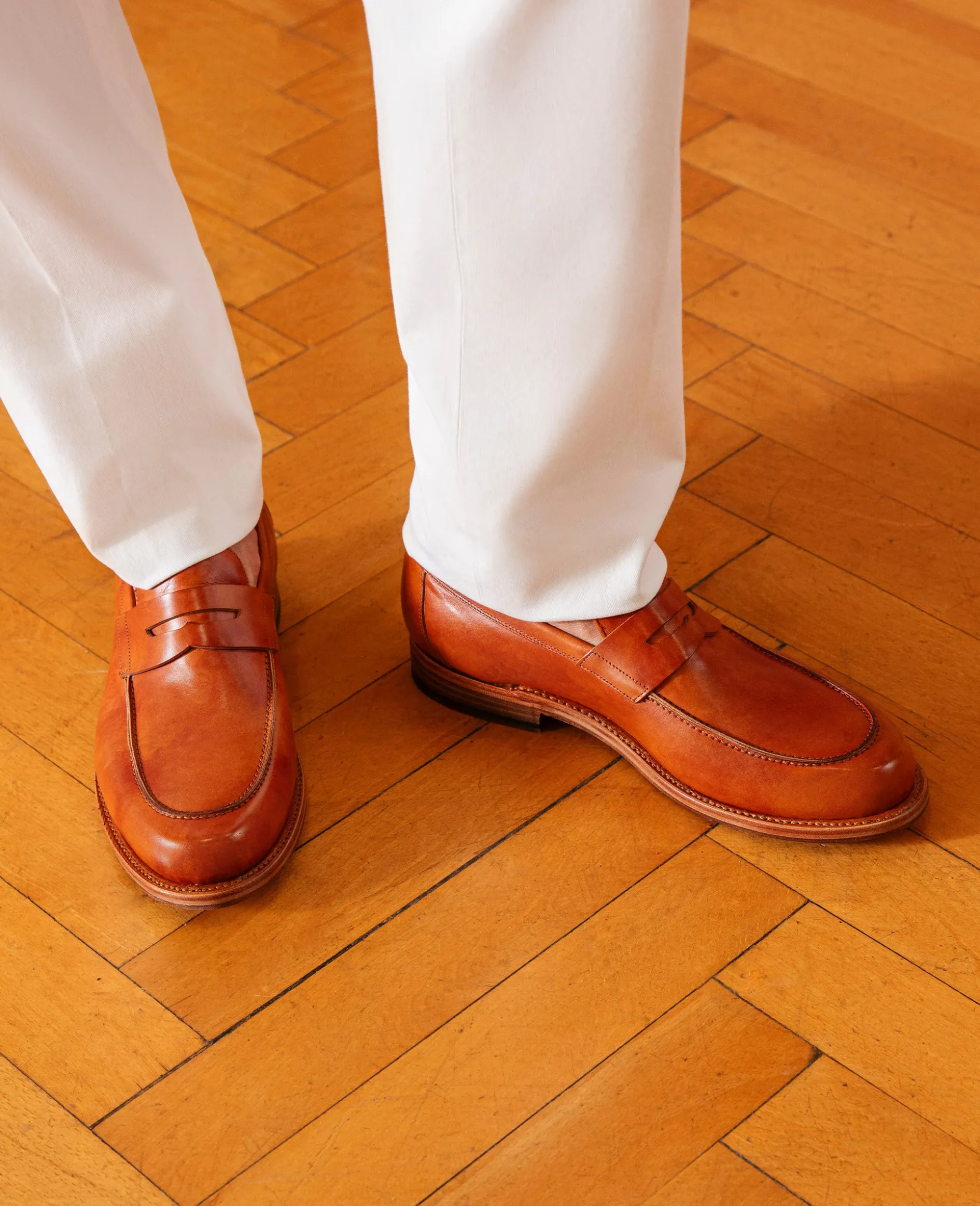 Der Wien ist der klassische Loafer-Leisten im Hause Dinkelacker. Die Passform unterscheidet sich hier insbesondere zwischen einer kurzen Schuhlasche für den hohen Spann und einer längeren Lasche, die für den flacheren Fuß geeignet ist.
