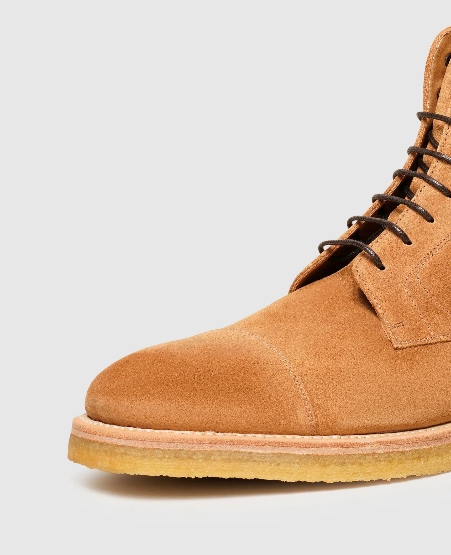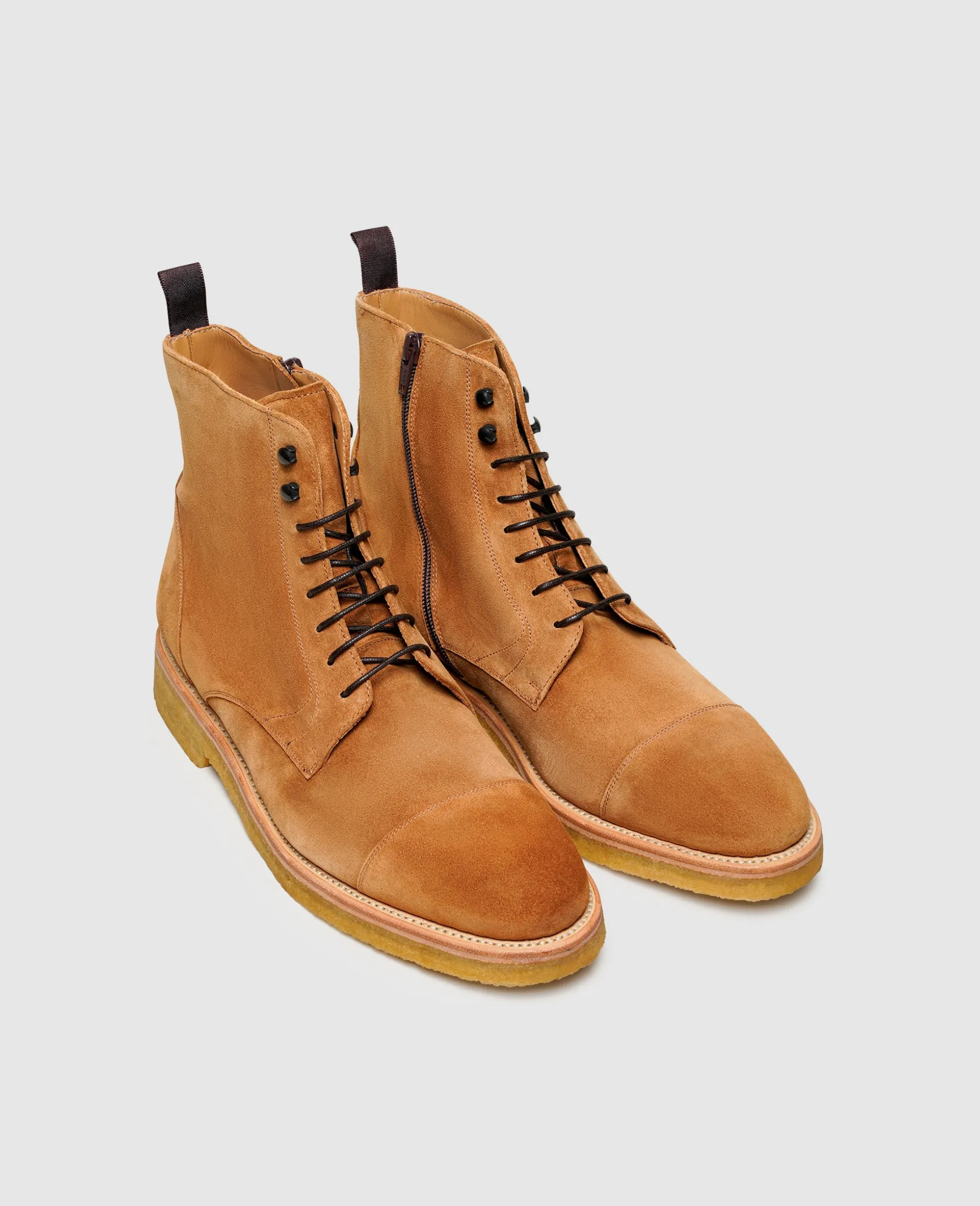 Raues Flair verströmen diese handgefertigten Boots für Herren im klassischen Derby-Schnitt von Henry Stevens – als Teil der rahmengenähten Kollektion garantiert der dynamische Allrounder mit der modernen Kreppsohle und dem seitlichen Zipper Tragekomfort auf höchstem Niveau. Das erlesene Rauleder erweist sich nicht nur als ausgesprochen pflegeleicht, sondern harmoniert hervorragend zur modernen Business-Garderobe und legeren Freizeit-Ensembles.