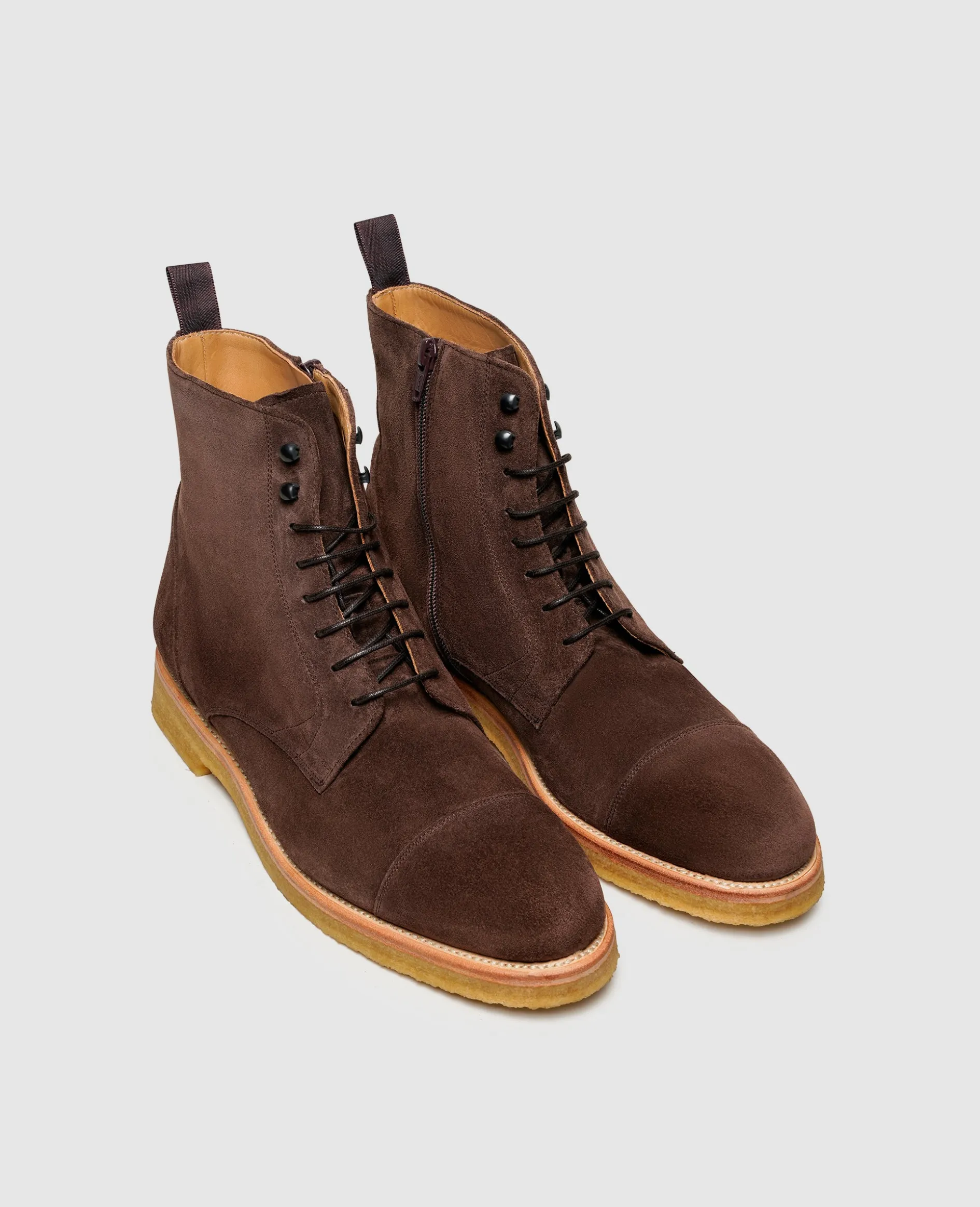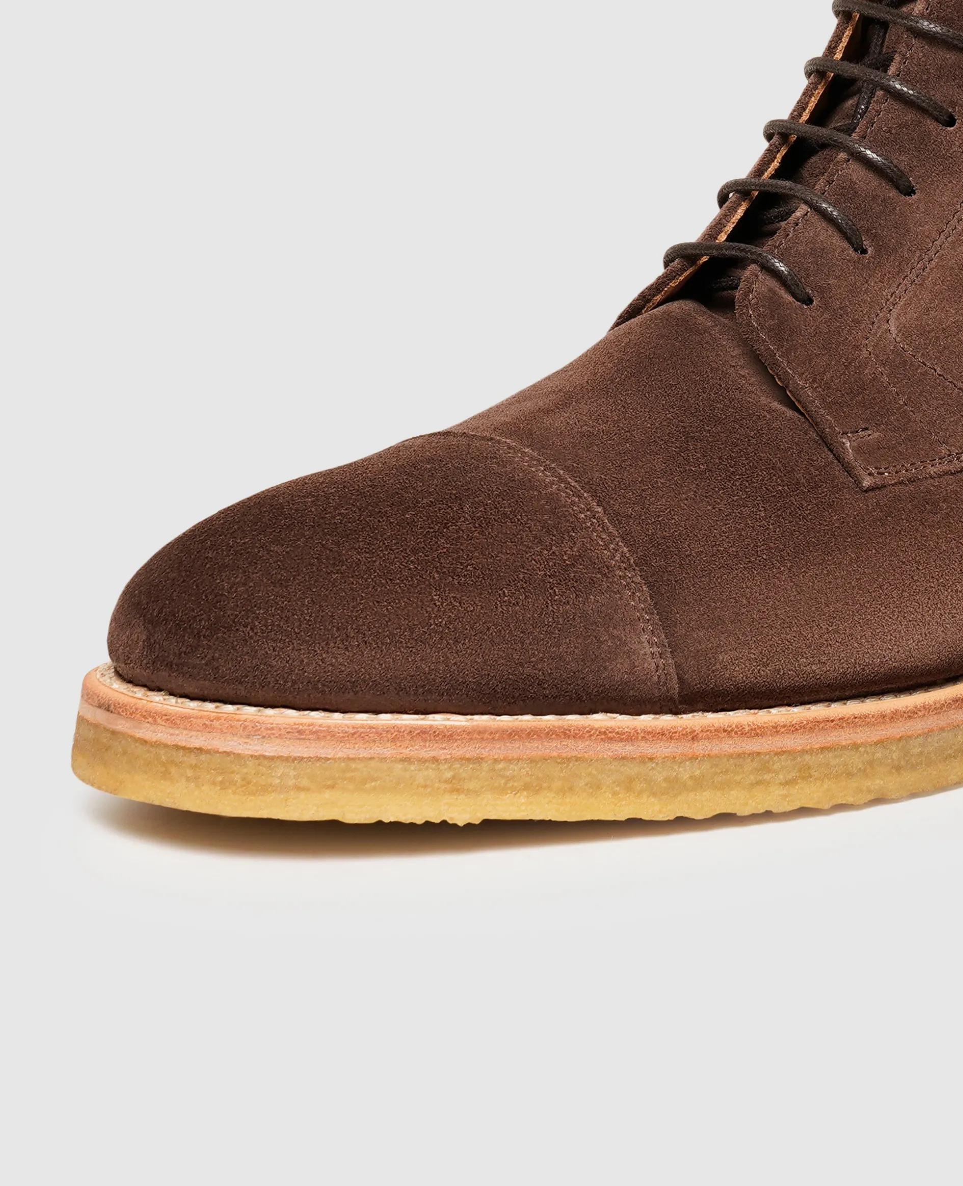 Raues Flair verströmen diese handgefertigten Boots für Herren im klassischen Derby-Schnitt von Henry Stevens – als Teil der rahmengenähten Kollektion garantiert der dynamische Allrounder mit der modernen Kreppsohle und dem seitlichen Zipper Tragekomfort auf höchstem Niveau. Das erlesene Rauleder erweist sich nicht nur als ausgesprochen pflegeleicht, sondern harmoniert hervorragend zur modernen Business-Garderobe und legeren Freizeit-Ensembles.