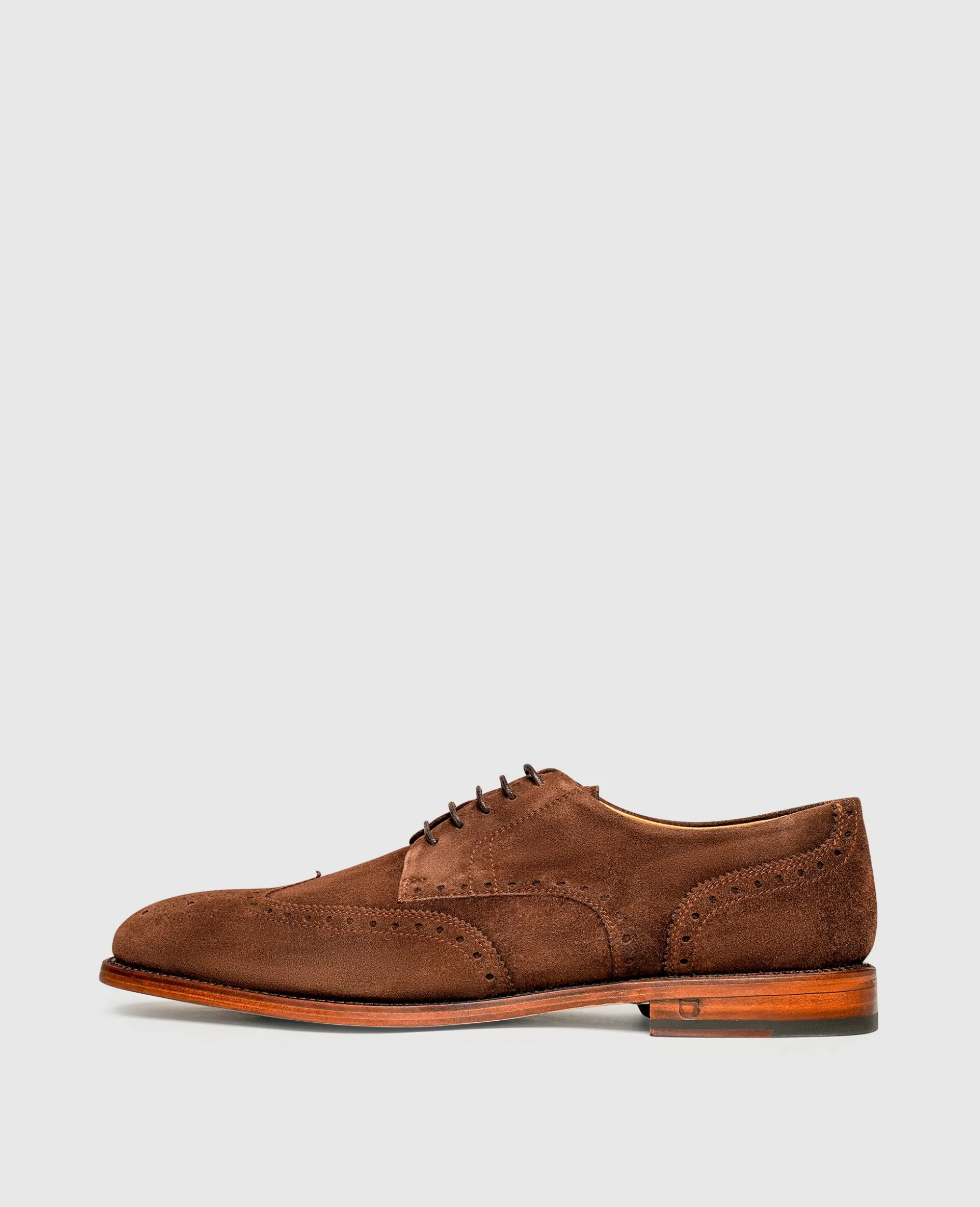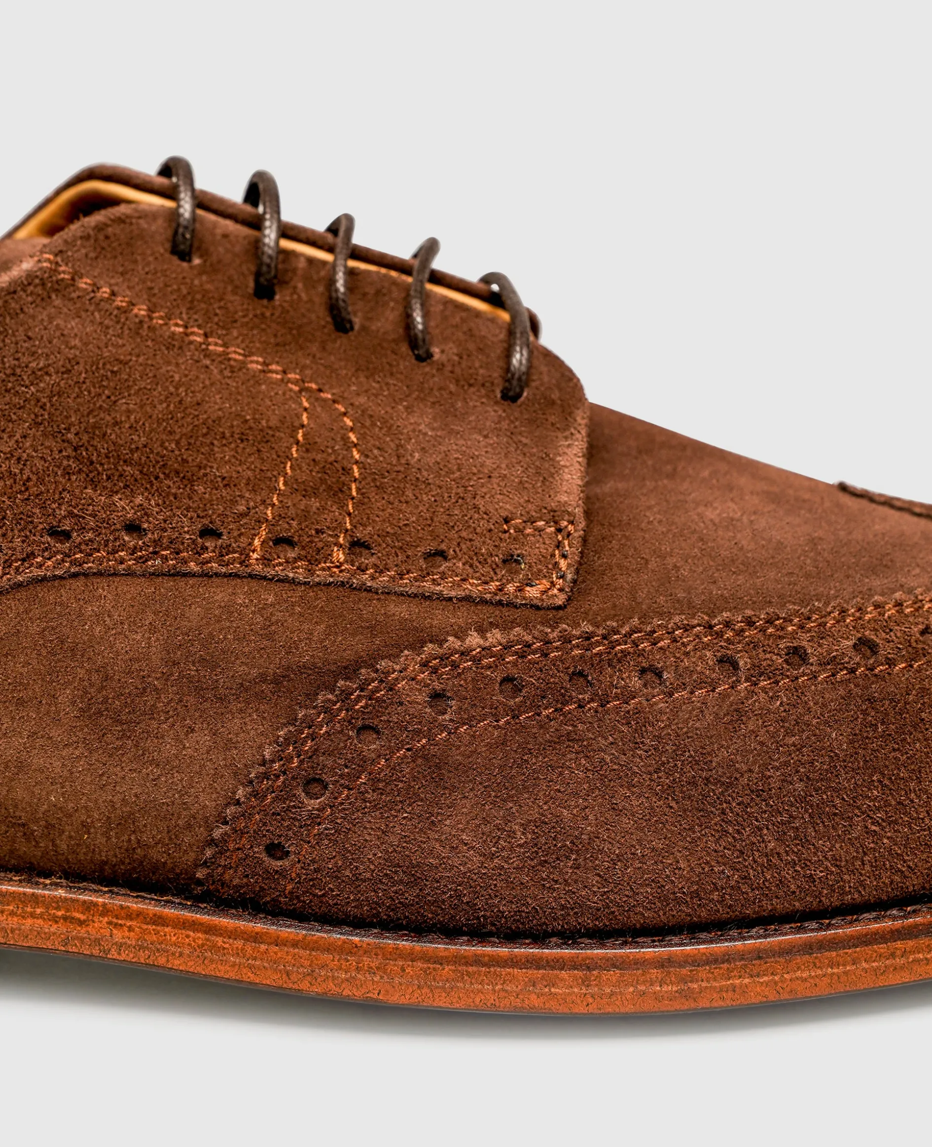 Dynamisches Flair umgibt den rahmengenähten Full-Brogue Derby von Henry Stevens. Der handgefertigte Schnürschuh für Herren überzeugt mit erlesenem Velours-Leder von samtiger Haptik und einer detailverliebten Perforation. Das aufwendige Zusammenspiel aus ausgewählten europäischen Materialien, einer perfektionierten Leistenform sowie einer nachhaltigen Fertigung in Spanien verleiht dem klassischen Allrounder ein Optimum an Ästhetik, Tragekomfort und Langlebigkeit.