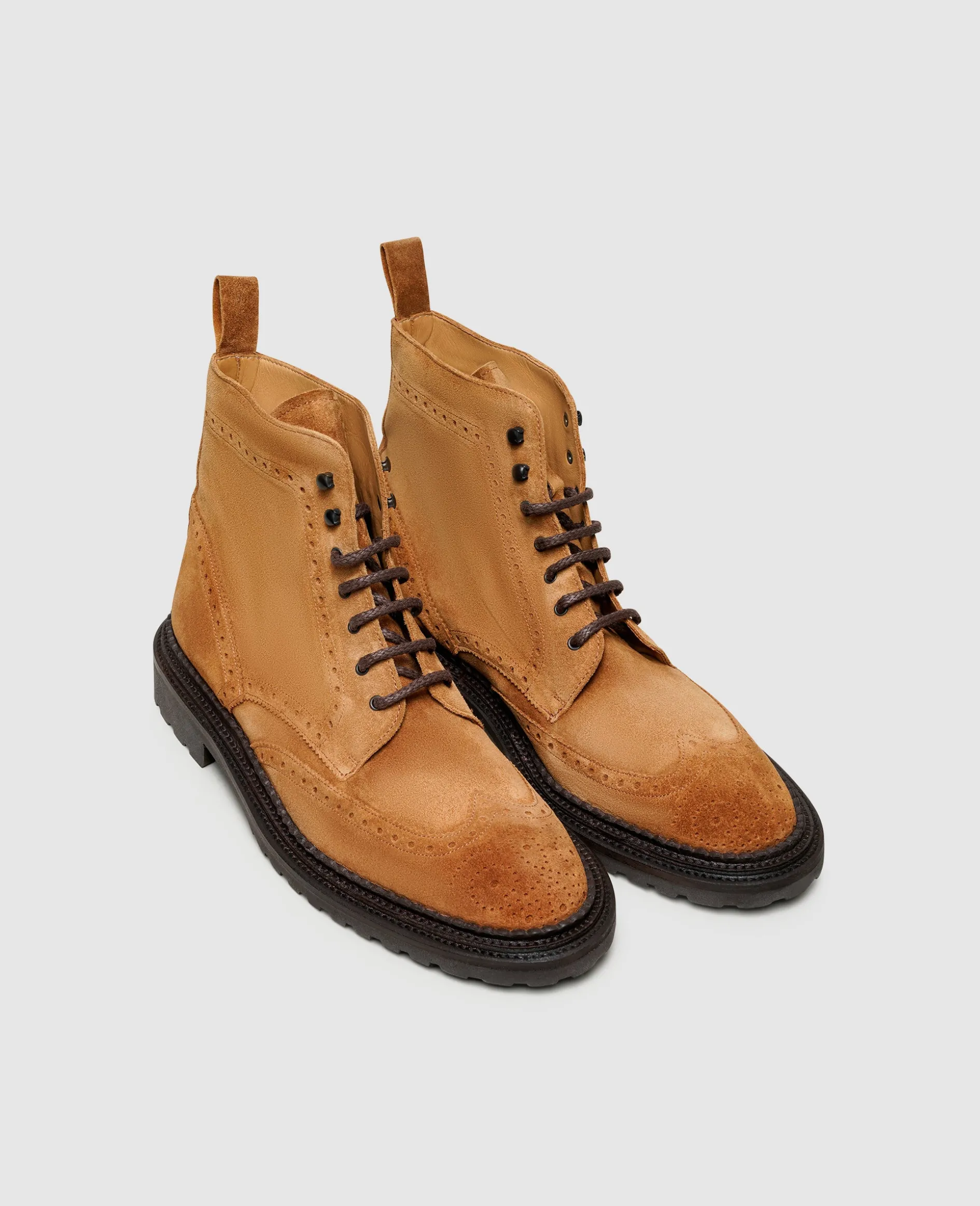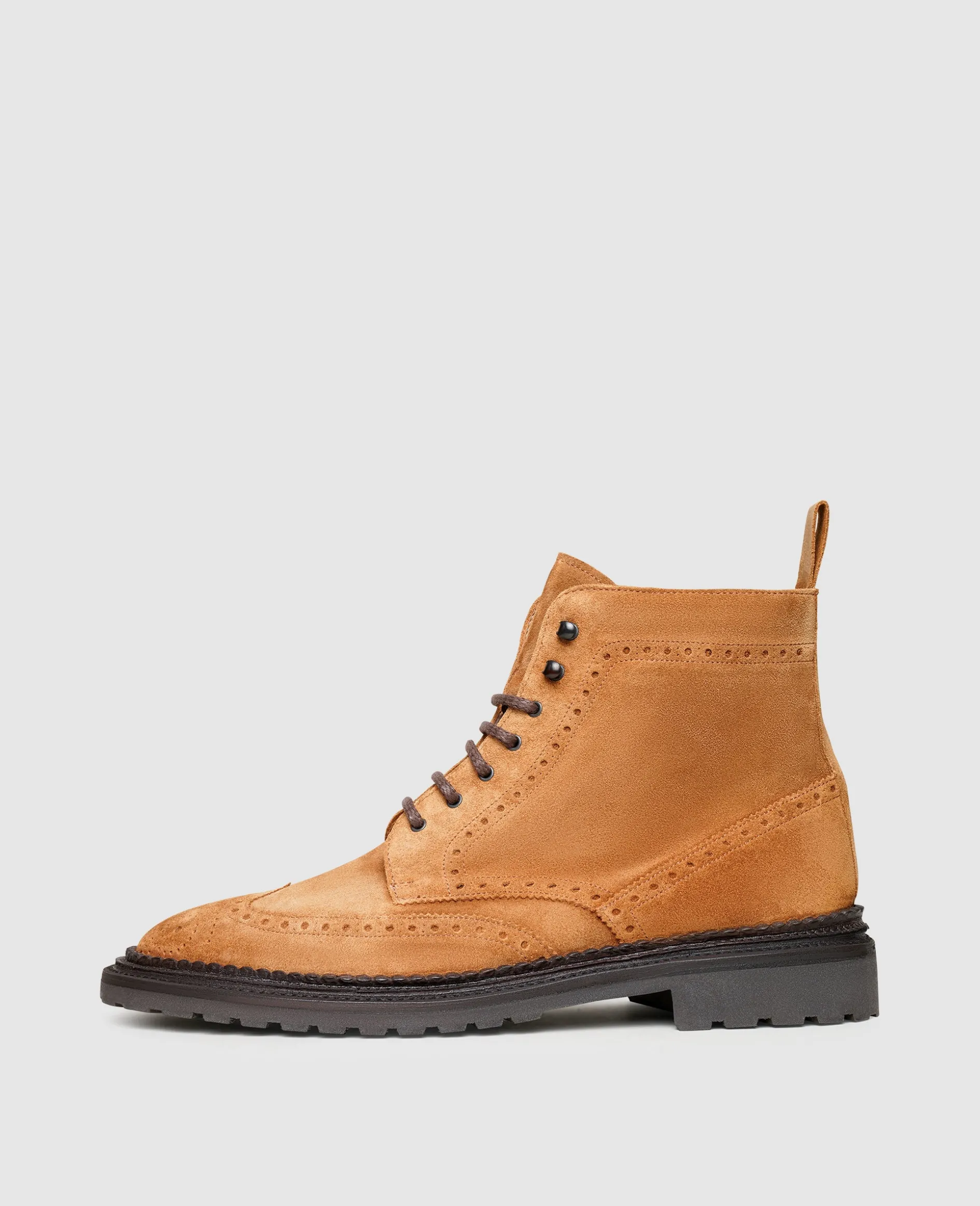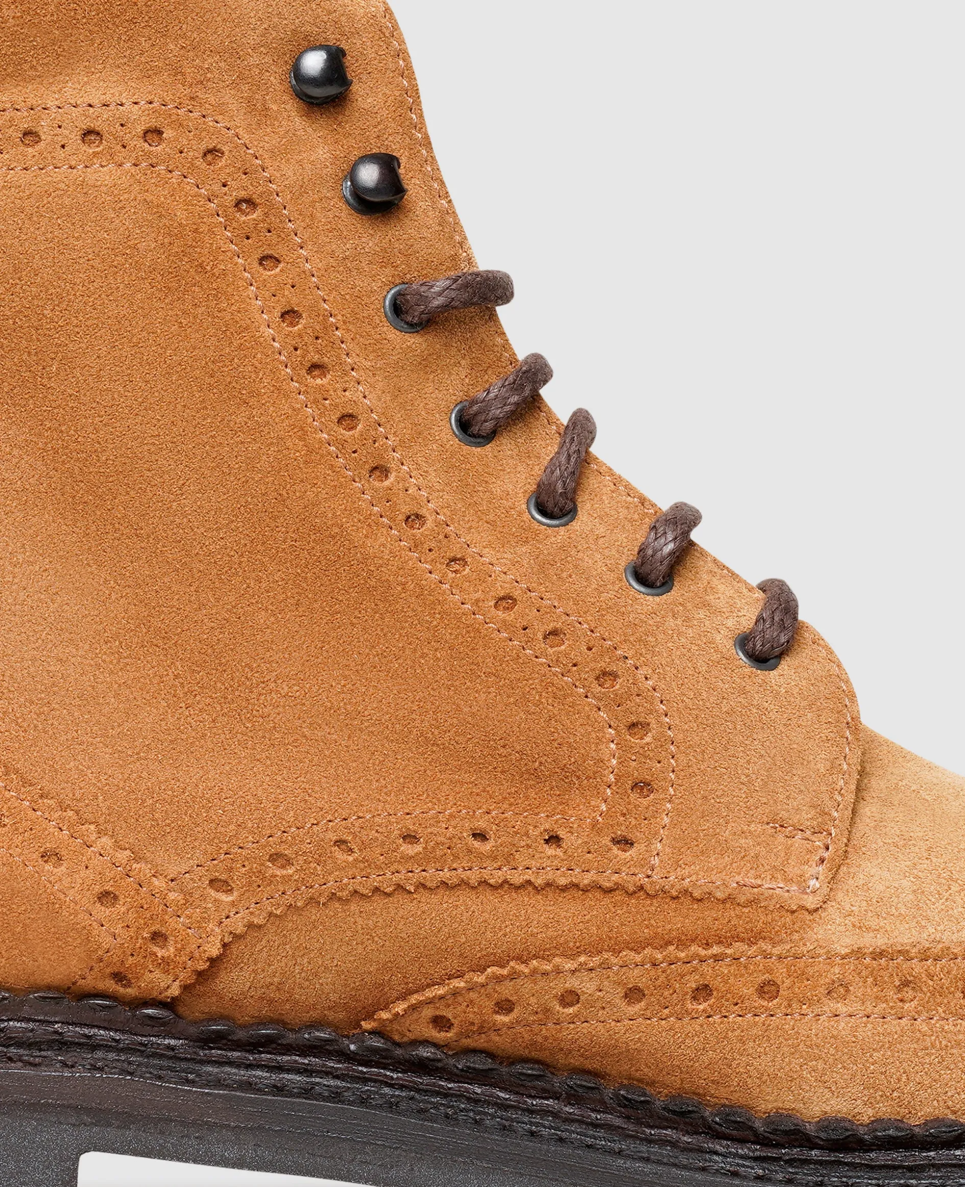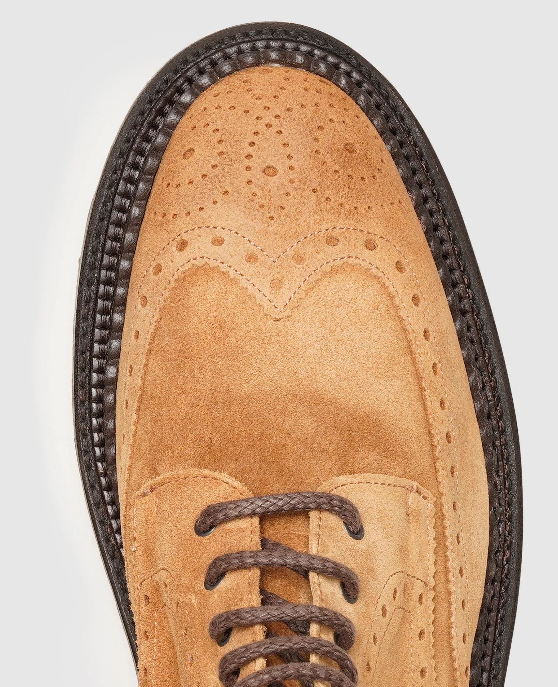 Mit einem außergewöhnlichen Detail verwandelt dieser rahmengenähte und handgefertigte Full-Brogue Derby Boot für Herren von Henry Stevens vielfältige Smart Casual Looks in etwas Besonderes. Ein aufwendiger Dreifachrahmen, auch als Triple Welt bekannt, verleiht dem opulent verzierten Herrenstiefel eine markante Souveränität. Das samtige Velours-Leder sorgt für Dynamik und findet mit der stabilen Gummiprofilsohle einen wetterfesten Abschluss.