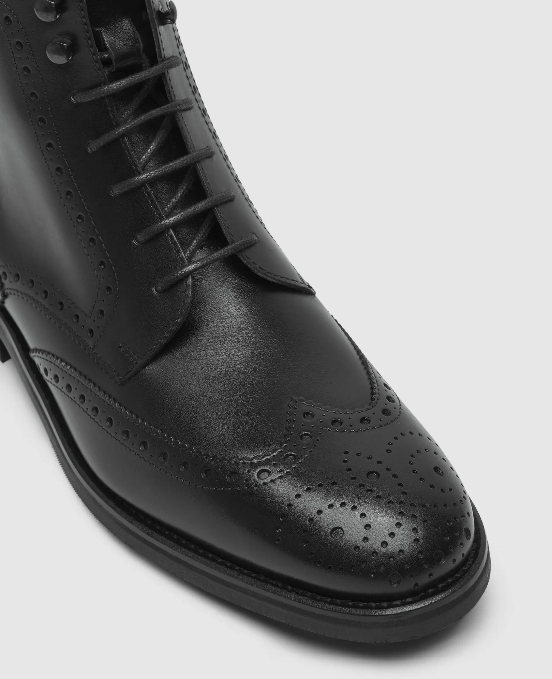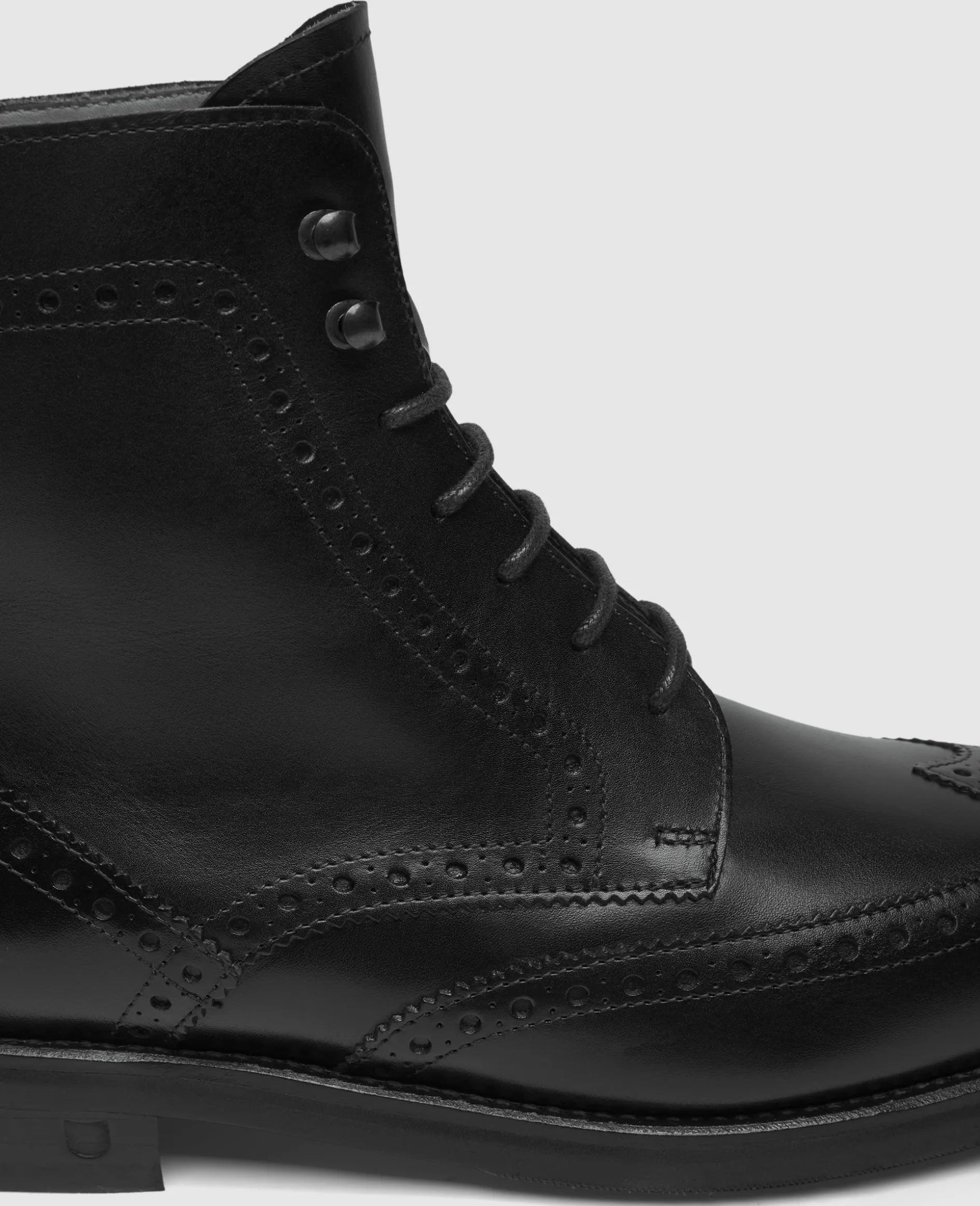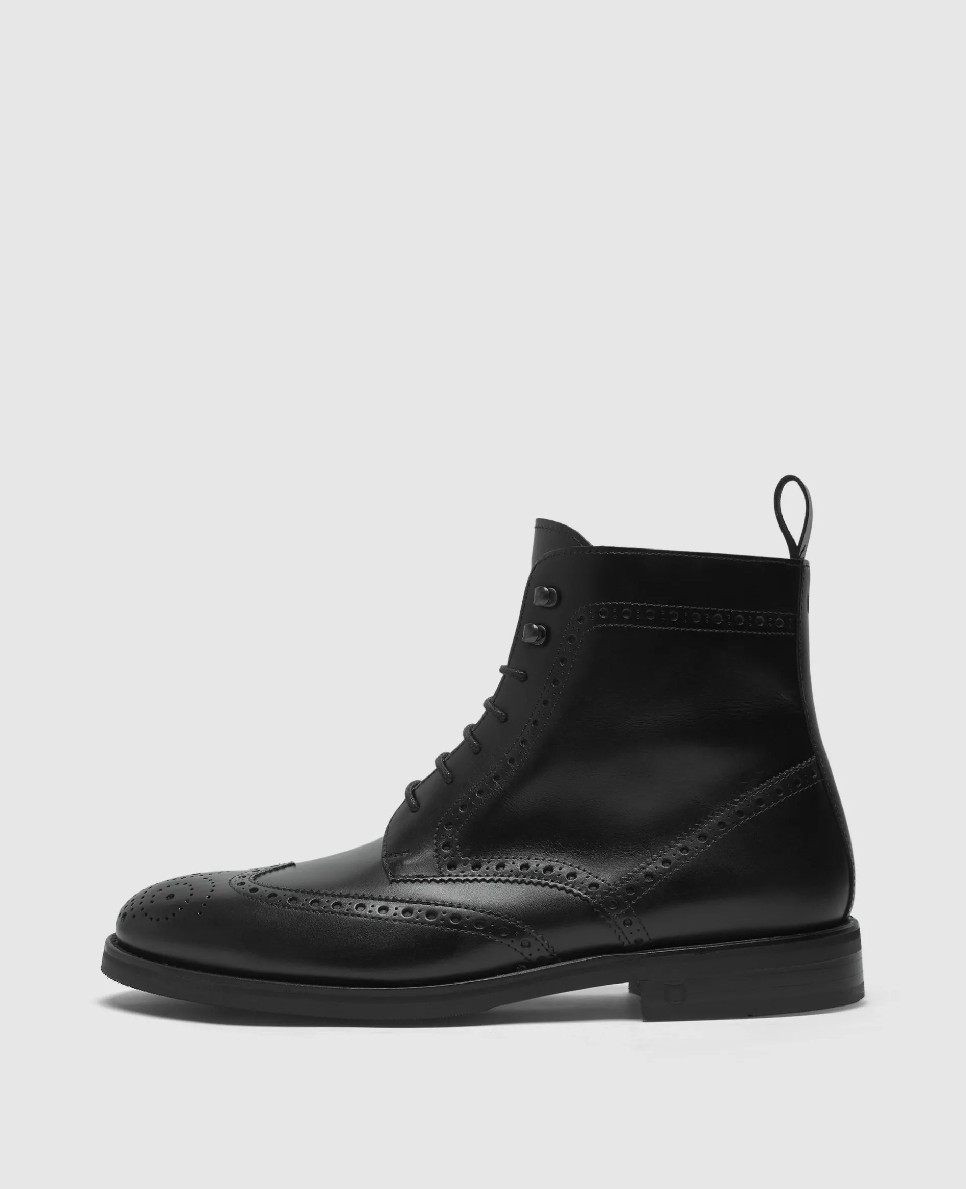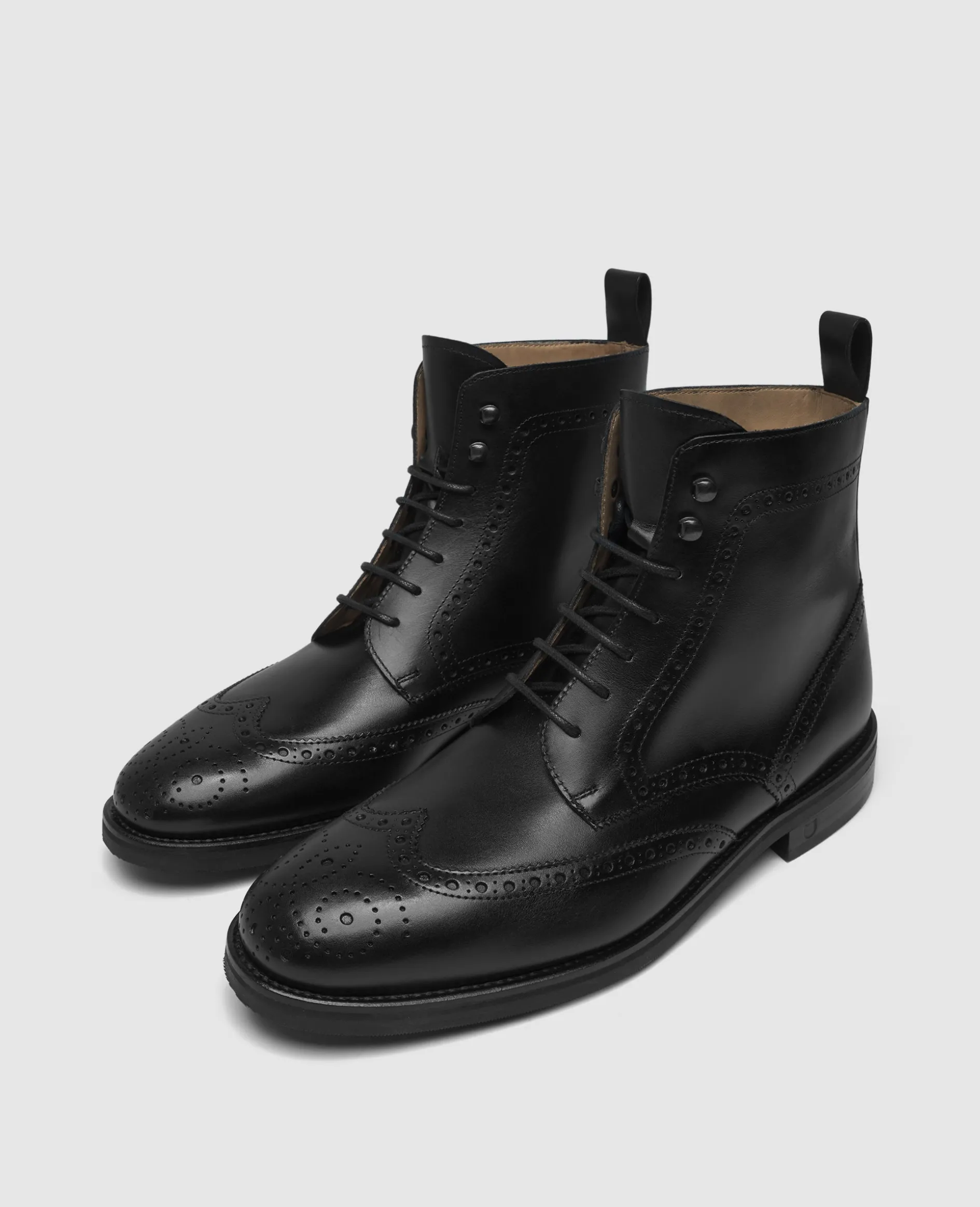 Der Winston Full-Brogue Derby Boot in Schwarz ist aus Boxcalf gefertigt und verfügt über ein Innenmaterial aus vegetabil gegerbtem Leder. Durch die rahmengenähte Machart, kombiniert mit der flexiblen Gummisohle bietet er hohen Komfort, vereint mit klassischem Design. Hergestellt in Spanien.