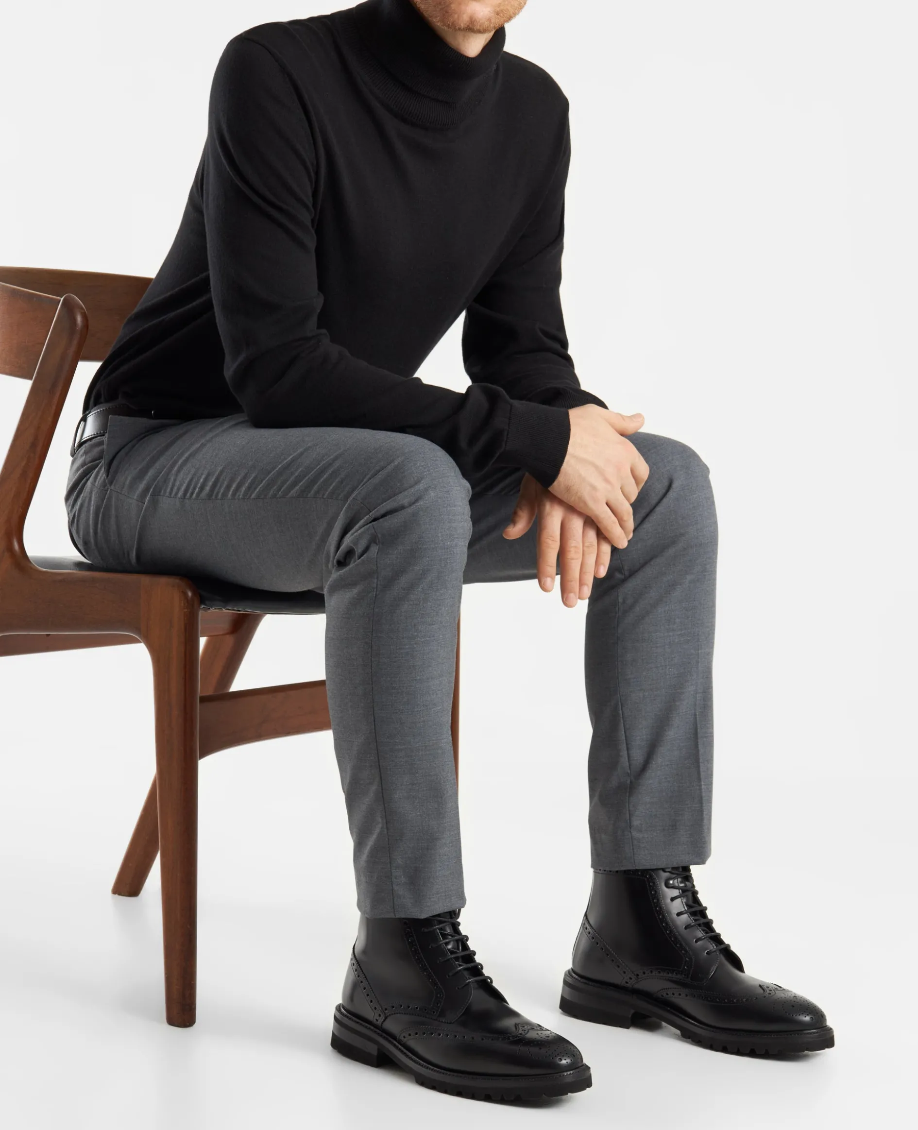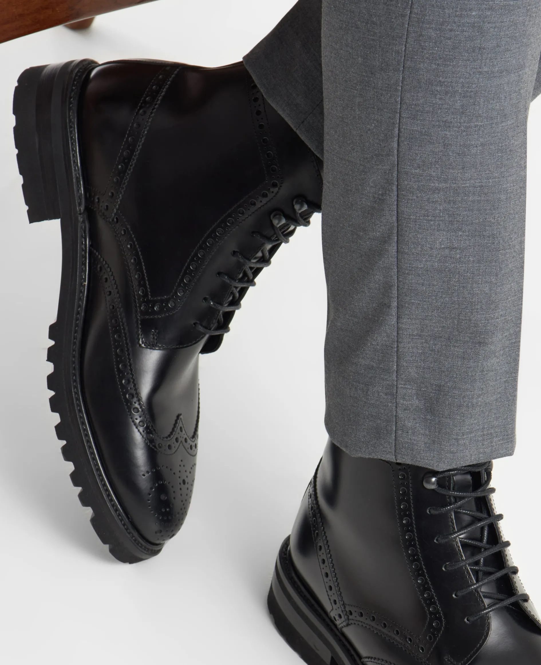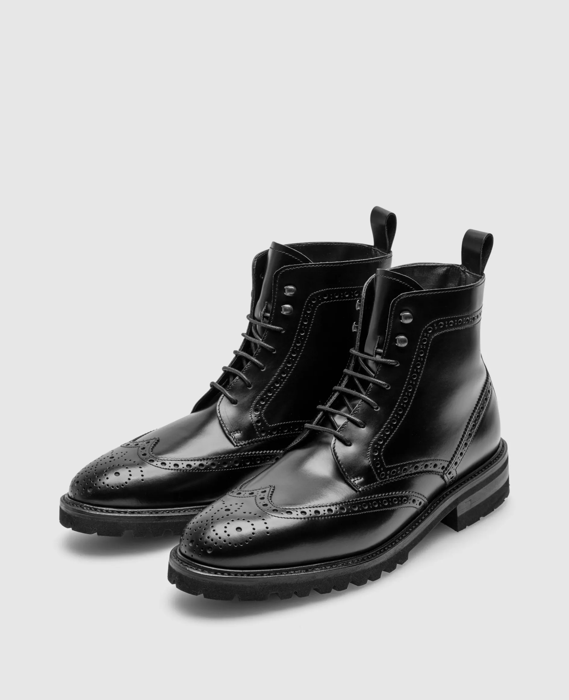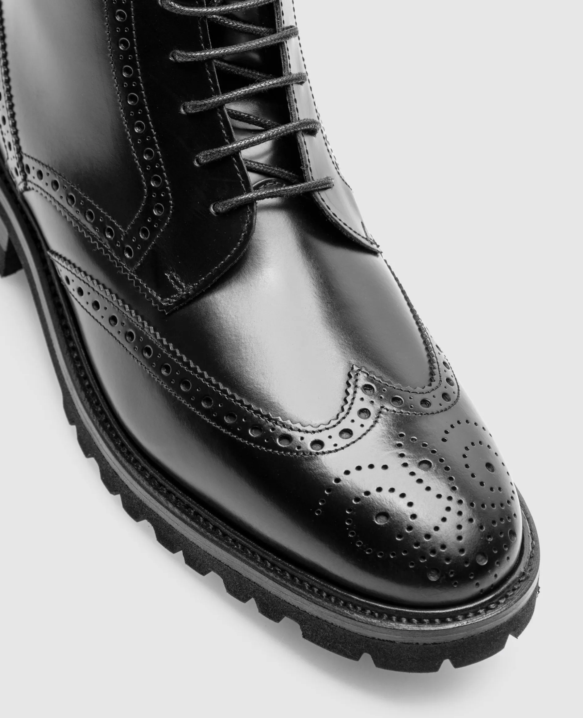 Der Winston Full-Brogue Derby Boot in Schwarz ist aus Boxcalf gefertigt und verfügt über ein Innenmaterial aus weichem Lammfell. Durch die rahmengenähte Machart, kombiniert mit der Lightweight-Profilgummisohle bietet er hohen Komfort, vereint mit klassischem Design. Hergestellt in Spanien.