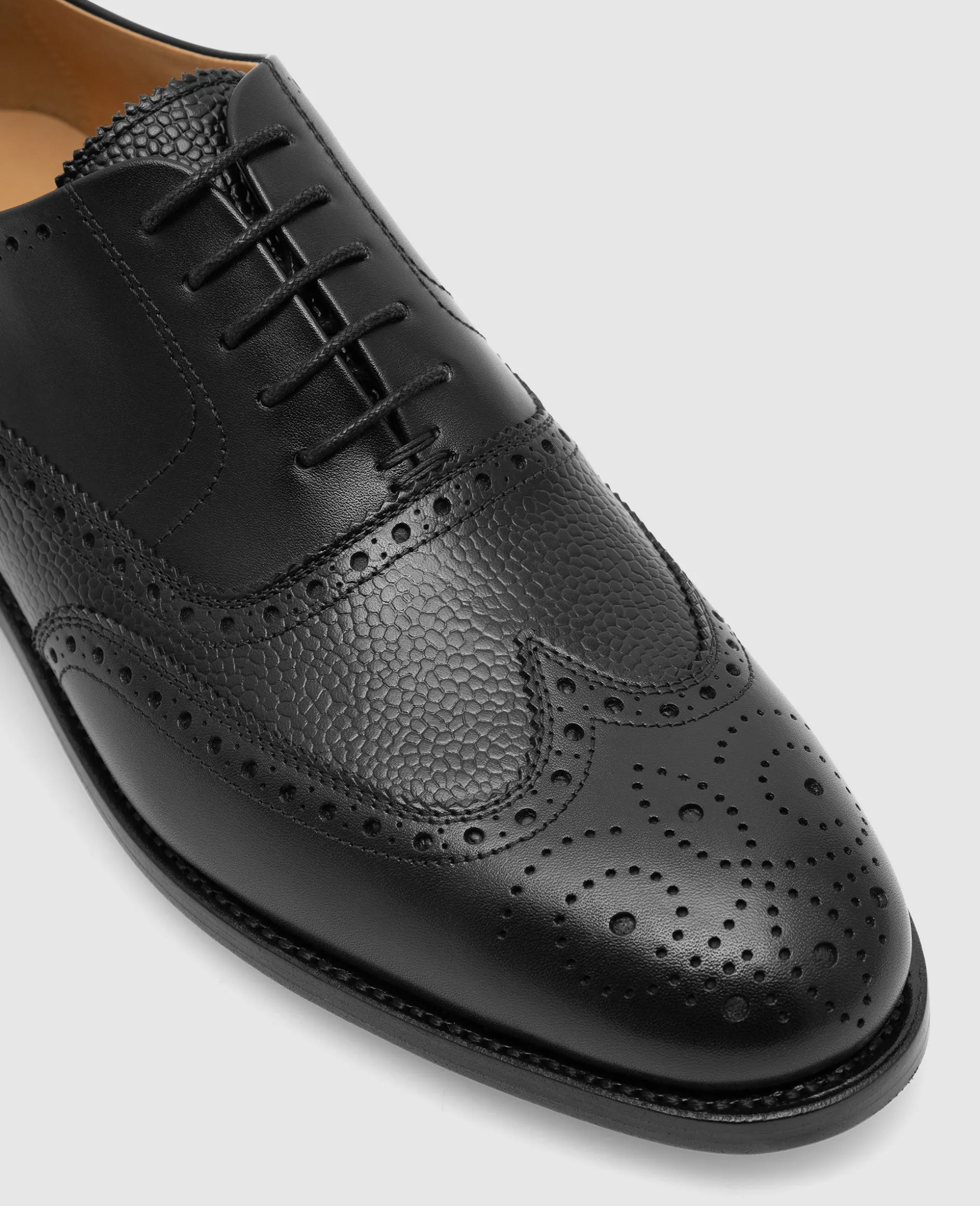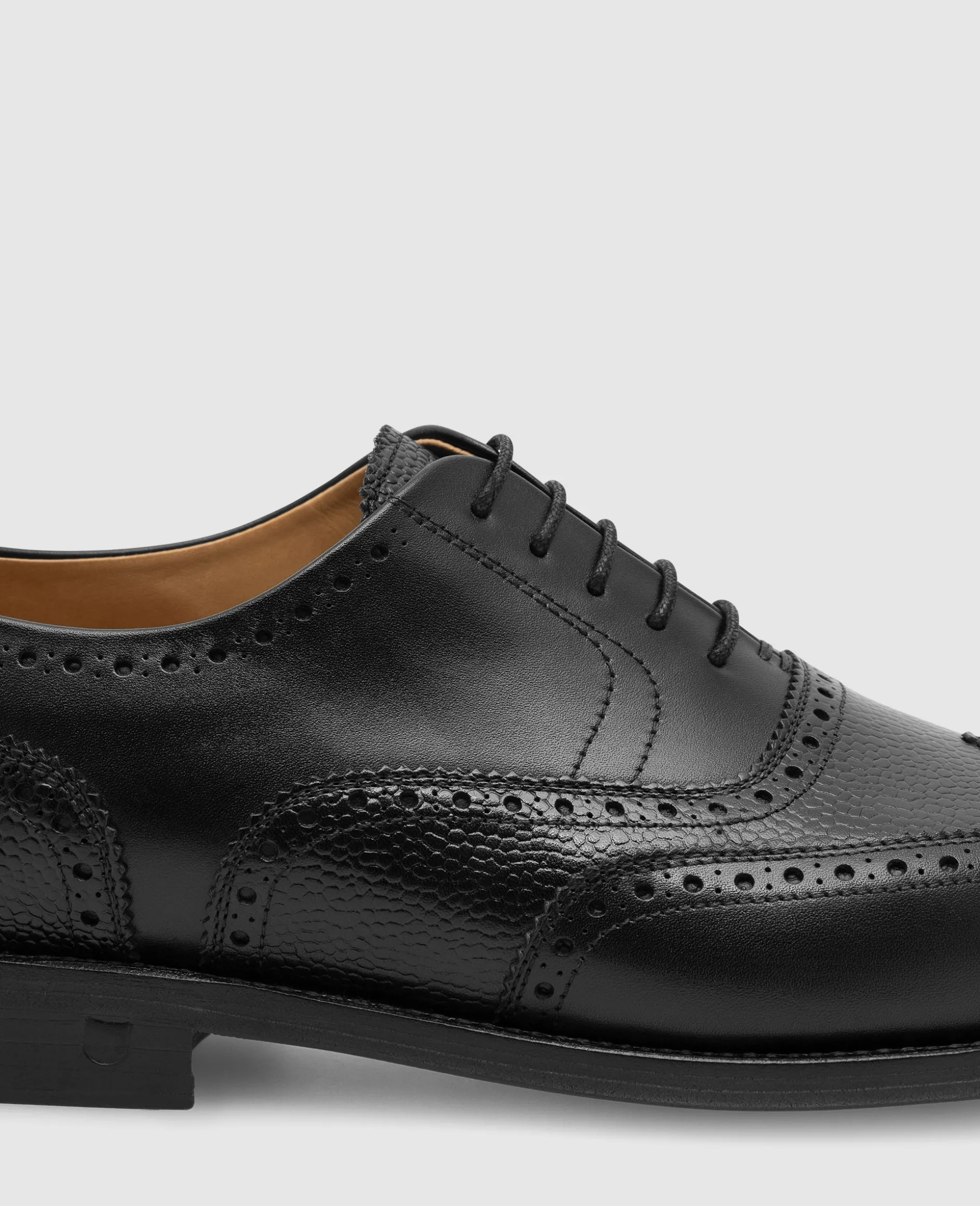 Der Winston Full Brogue-Oxford in Schwarz ist aus hochwertigem Scotch Grain gefertigt und verfügt über ein Innenfutter aus vegetabil gegerbtem Leder. Seine Ledersohle ist rahmengenäht und somit besonders langlebig. Dieser Oxford ist das ganze Jahr über eine stilvolle und elegante Wahl.