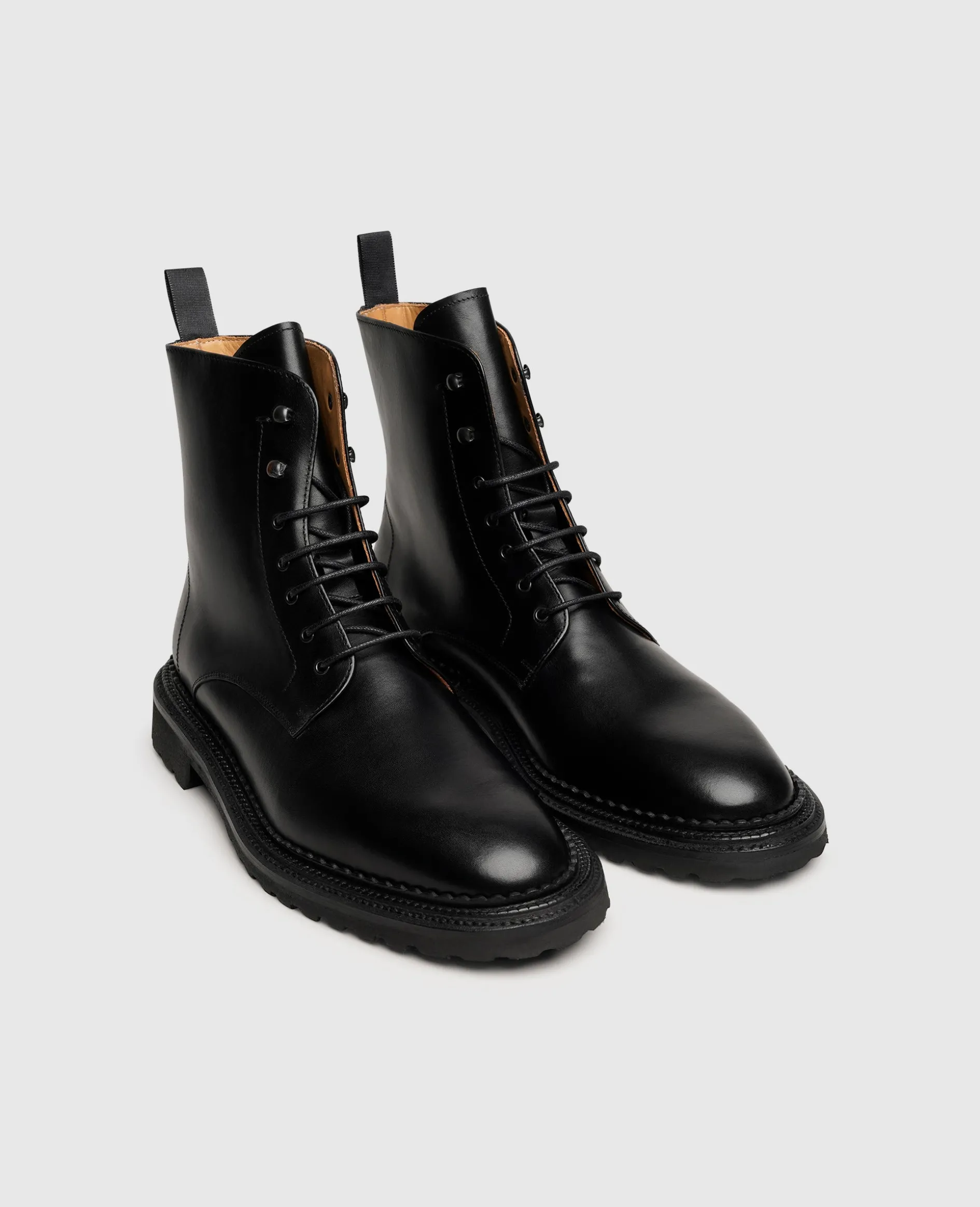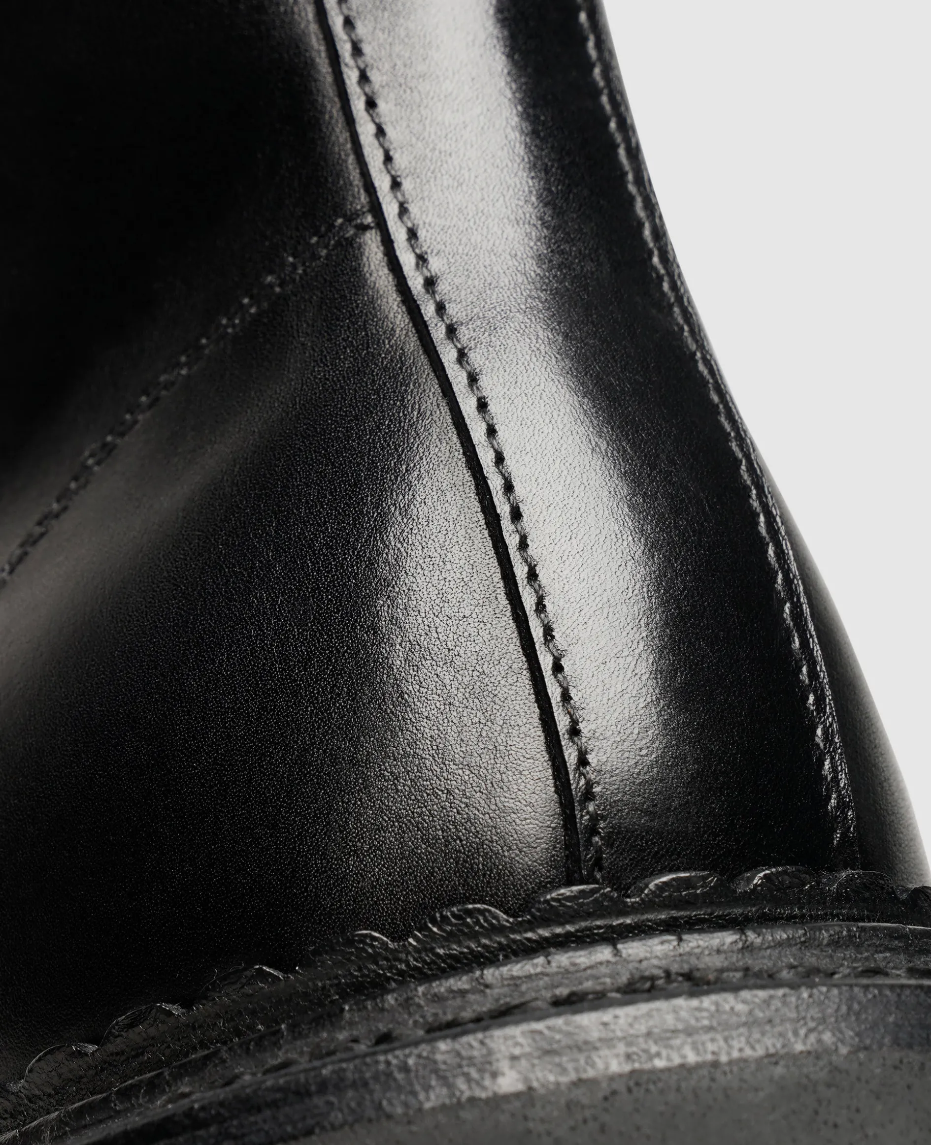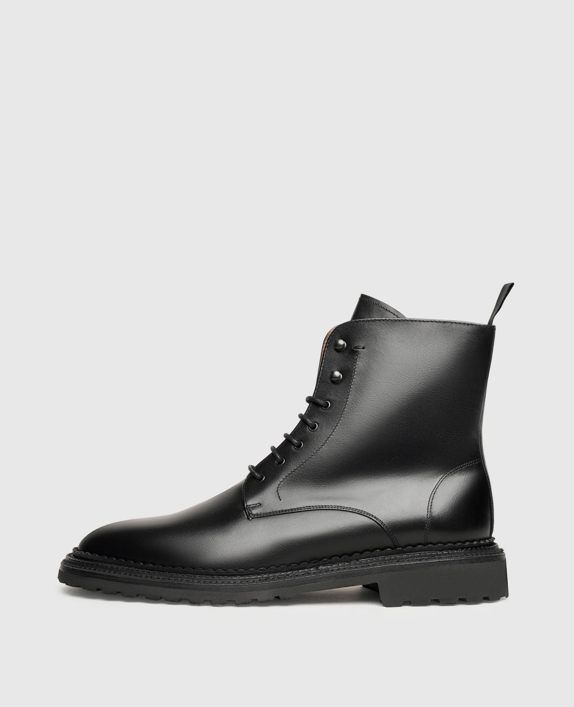 Zum absoluten Blickfang avanciert bei diesen rahmengenähten und handgefertigten Herren-Boots der Marke Henry Stevens der außergewöhnliche Bodenaufbau: Ein dreifacher Rahmen verleiht dem ansonsten unverzierten Schnürstiefel eine markante und selbstbewusste Optik. Die rutschfeste Gummiprofilsohle unterstützt die robuste Erscheinung und sorgt vor allem in der nasskalten Saison für verlässliche Standfestigkeit. Die richtige Wahl für den informellen Dresscode.
